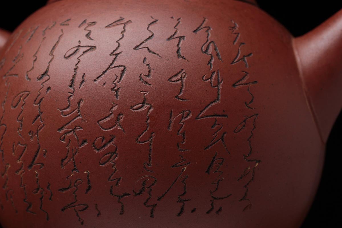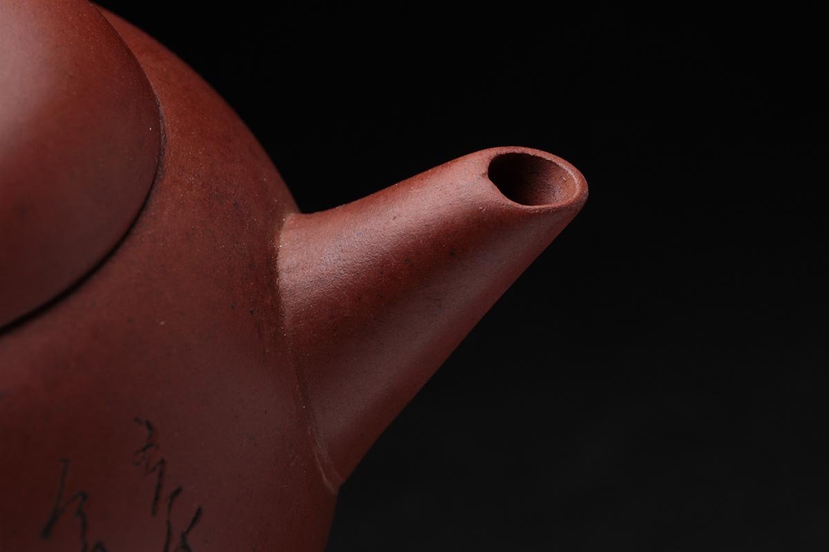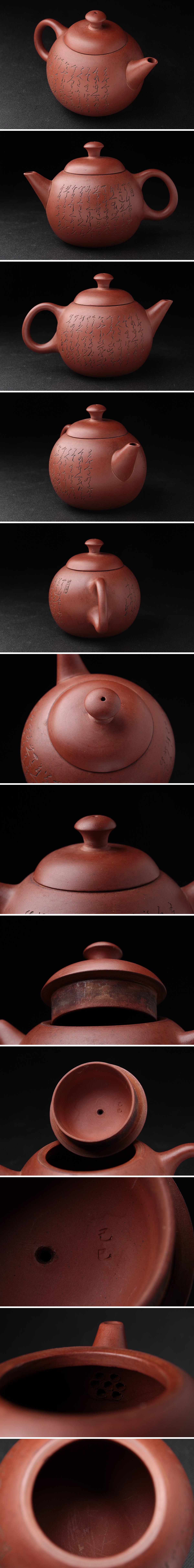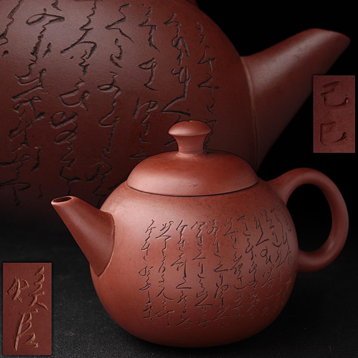 ◆ 中国宜興 唐物【煥臣款/蓋款】紫砂 砲口 朱泥漢詩図後手急須・朱泥急須・紫砂漢詩圖単孔口壺 煎茶道具 中国古陶磁 ◆