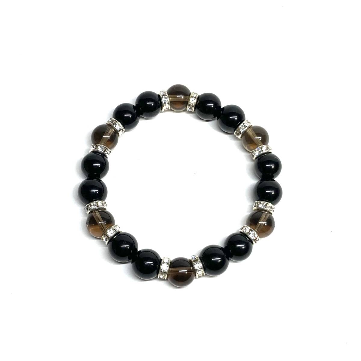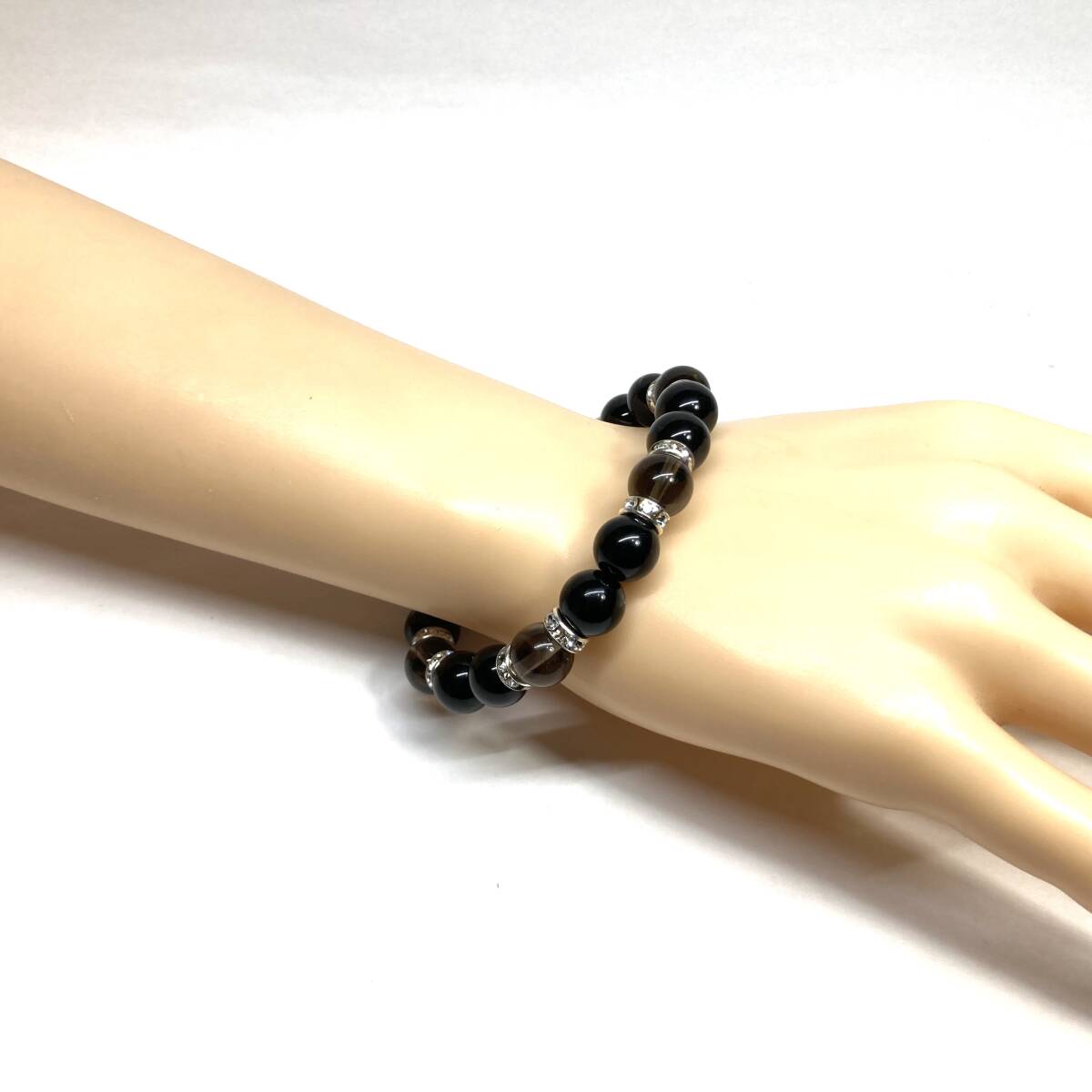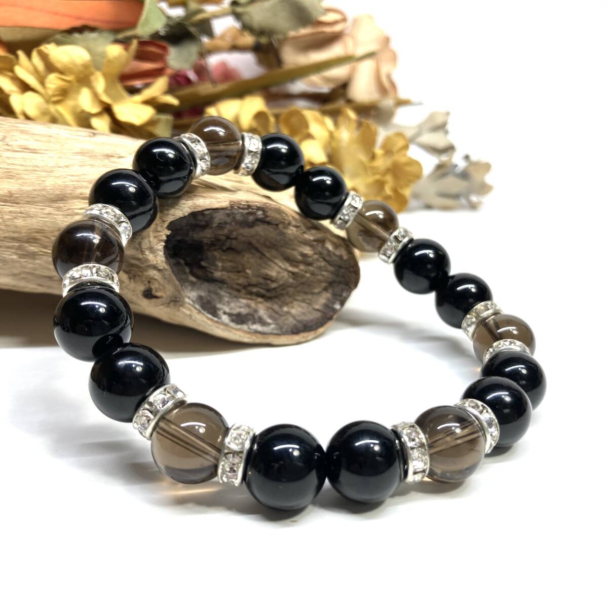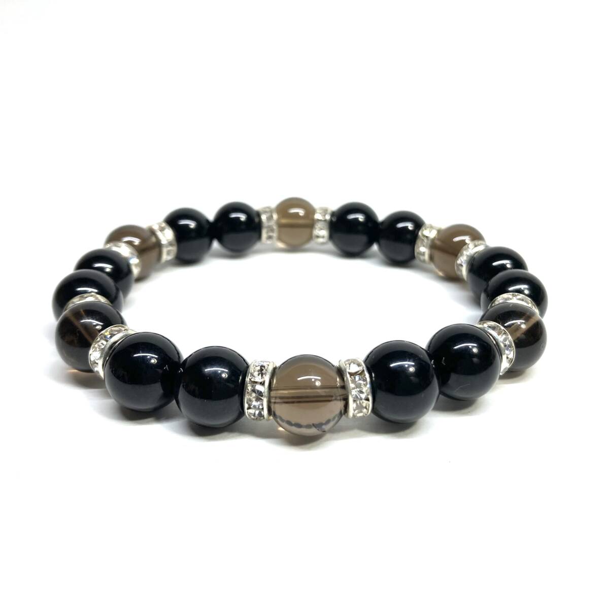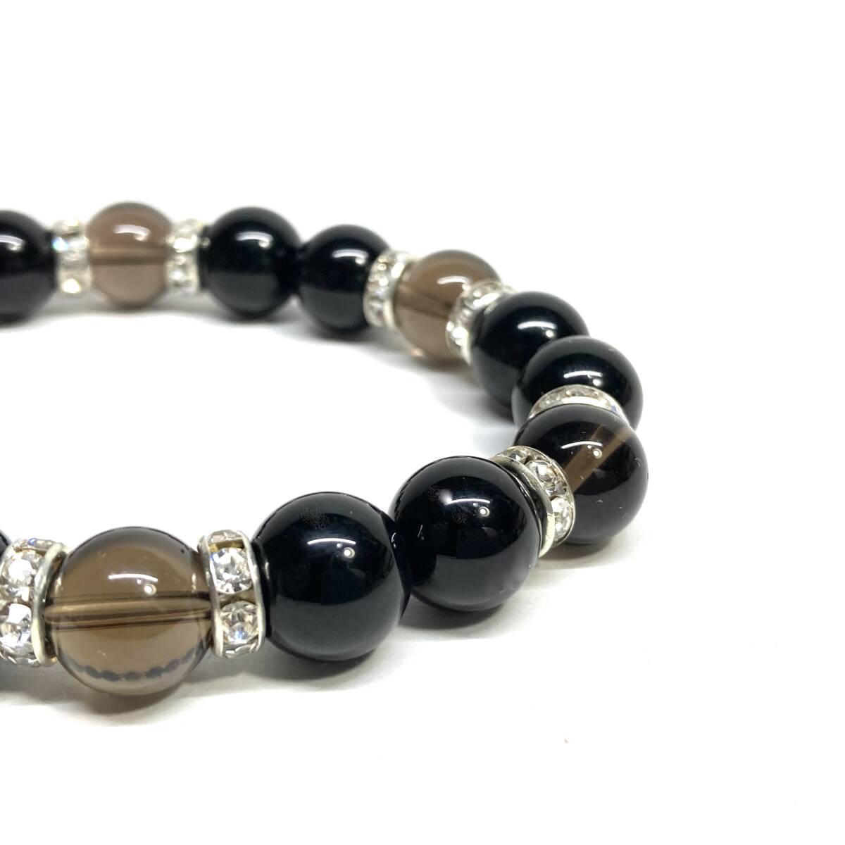 モリオン&スモーキークォーツ パワーストーン ブレスレット 天然石ブレス (シルバー) 10mm メンズ・レディース 厄除け 癒し ☆