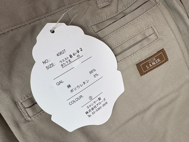40627-3-nb526-3*ウエスト86-92 股下65cm*CLUB LA MER 脇シャーリングチノパンツ クラブ・ラメール ストレッチ