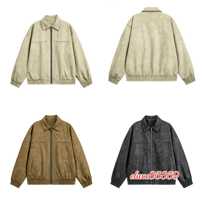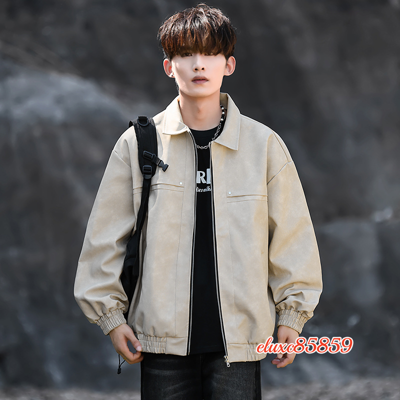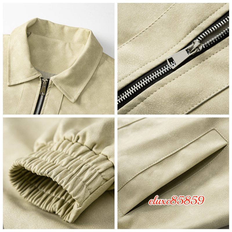 秋冬 メンズ レザージャケット ライダース ノータッチカラー ジャンパー ブルゾン シティーボーイ 男女兼用 アウター XL~3XL選択 ベージュ