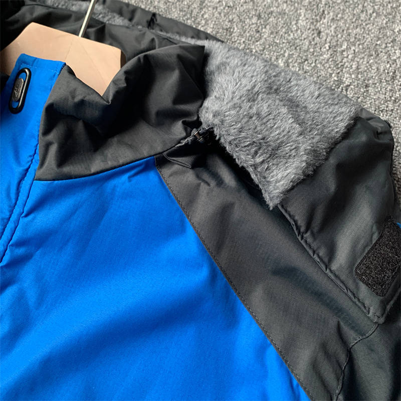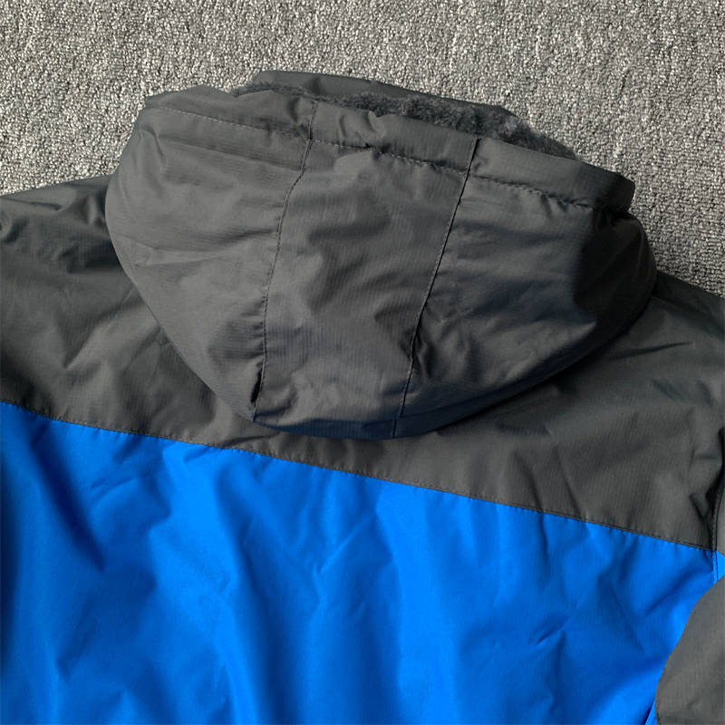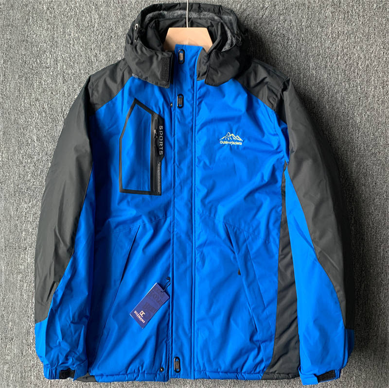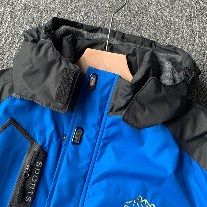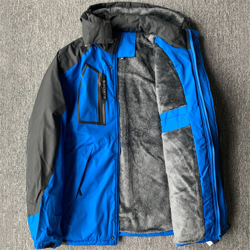 6035-5XLブルー 大きいサイズ 中綿ジャケット メンズ 裏起毛 フード取り外し可 マウンテンパーカー 新品DCKMANY 撥水 厚手 防寒 アウター