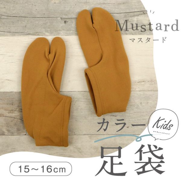 【キッズ カラーストレッチ足袋】 男女兼用 『マスタード・15-16㎝』 履きやすいソックスタイプ ストレッチ靴下 七五三 和装小物 k24-41