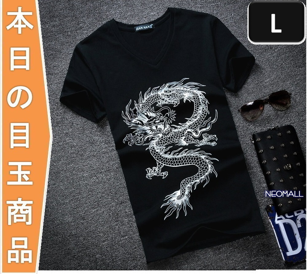 今日の目玉 ☆ 丸首 半袖 Tシャツ【295】ブラック Lサイズ トップス お洒落 シンプル 春夏