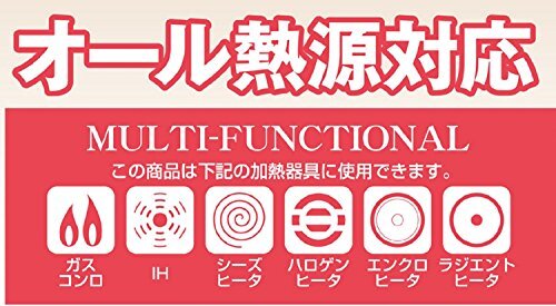 ガス火はもちろん、200VのIHクッキングヒーターやハロゲンヒーターなどオール熱源に対応 内面はこびりつきにくく、お手入れ簡単なふっ素加工