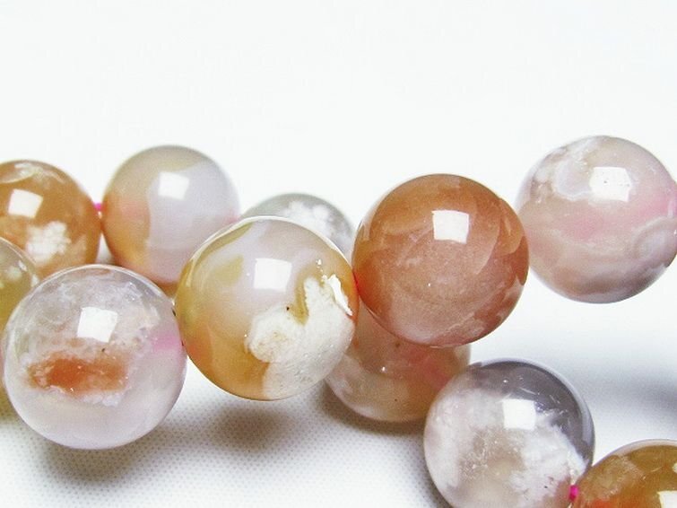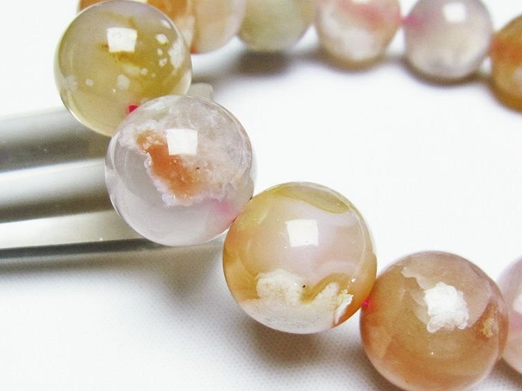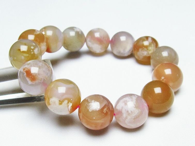 | ■商品名: 桜メノウ チェリーブロッサムアゲート ブレスレット ■商品ID: T213-1547 ■商品重量:約 71g ■商品サイズ:内周約:166mm(±5mm)粒直径約:15mm(±0.5mm)~16mm(±0.5mm) 【アゲート(瑪瑙)】 和名では瑪瑙(めのう)といい、アゲートの模様が馬の脳のように見える事からこのような名前が付けられました。 アゲートは赤、緑、青、黄、黒など、様々な色に着色されることで石本来のパワーがさらにアップするといわれており、着色により魅力を増す天然石はアゲートだけとも言えます。 さらにはアゲートを組み合わせるとペアになっているペアアゲート(トレジャーメノウ)は龍穴を生み出すとされ、風水的にも良いといわれています。 アゲートは古来より日本やインドやチベットなどで魔よけやお守りとされてきました。 失敗や不幸を遠ざけ金運や仕事運、成功運とも結び付けてくれる効果のほか、安産のお守りにも良いとされています。 さらに家庭円満や対人関係をスムーズにするなど、オールマイティな効果を持った石です。 ⇒ アゲートをもっと詳しく ◆ワンポイント情報 アゲートはカルセドニーの変種で、染色がされていなくともそれぞれの種類に多様な色があります。 ざっと仲間を挙げてみてもオニキス(黒)、サードニクス(橙色)、ブルーアゲート(青)、グリーンアゲート(緑)、イエローアゲート(黄)、ブルーレースアゲート(縞青)、モスアゲート(縞緑)、天眼石(縞黒)、カーネリアン(橙色)、ジャスパー(多様な縞)などとても多くの特徴と色合いを持っています。 |