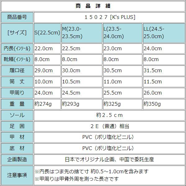 | ○薄ピンクの花柄をあしらったガーデニングブーツです。 お風呂掃除や家庭菜園、庭作業などちょっとした 作業用に大変重宝します。 ○履き口も大きく脱ぎ履きし易いのが特徴です。 ・女性用の為、試着したサイズ感はお応えできませんが S・M・L・LL表記の為、記載のサイズ幅でご購入いただければ 問題ないと思います。 サイズ:Sサイズ(22.0cm~22.5cm) ヒール厚:約2.5cmほど 素材:ポリ塩化ビニル 中敷:合成繊維 生産地:中国 | |||