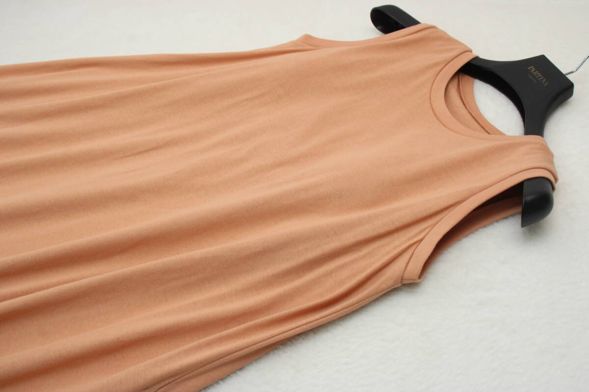 3431 新品タグ付き パッド付UVカット吸水×撥水 汗しみないマキシワンピース オレンジL~LLサイズ