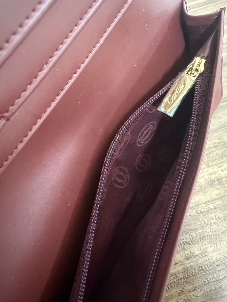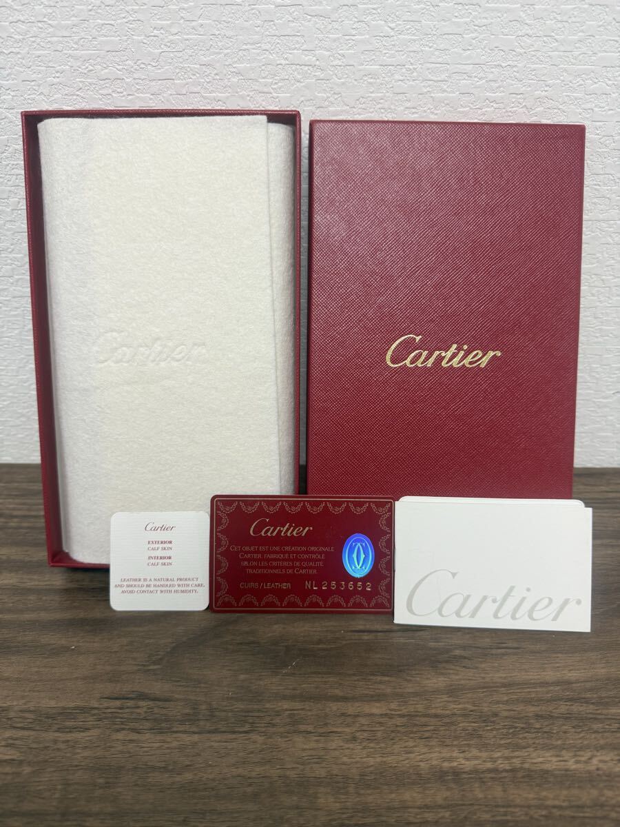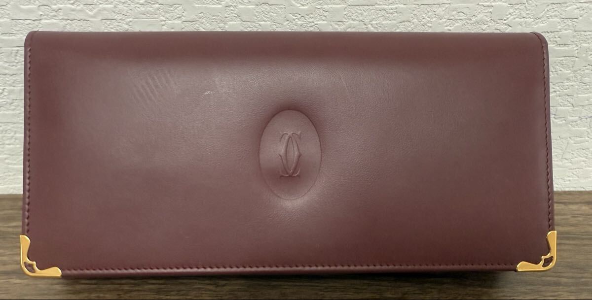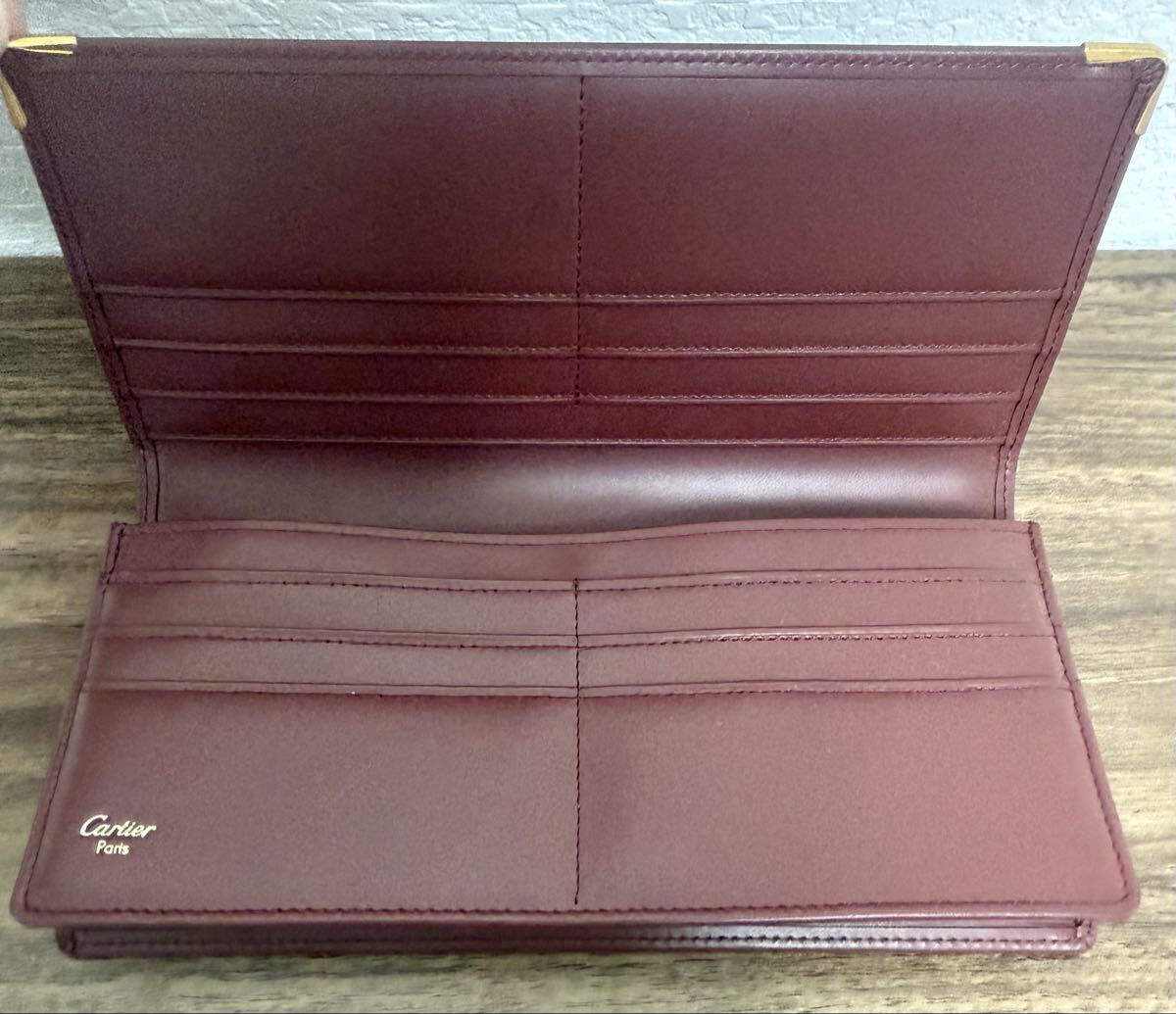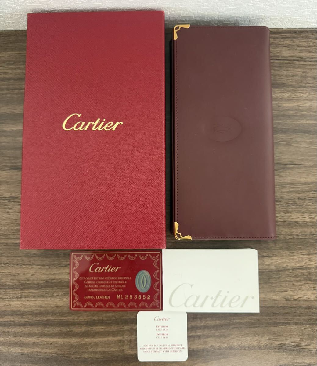 【未使用美品】Cartier/カルティエ マスト ドゥ カルティエ 二つ折り長財布 ボルドー 小銭入れ有り 箱、ギャランティー付き