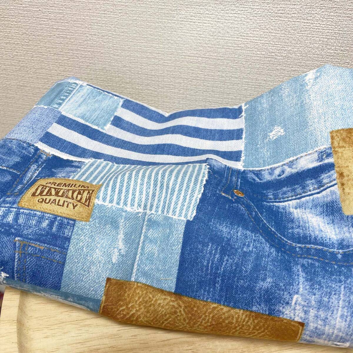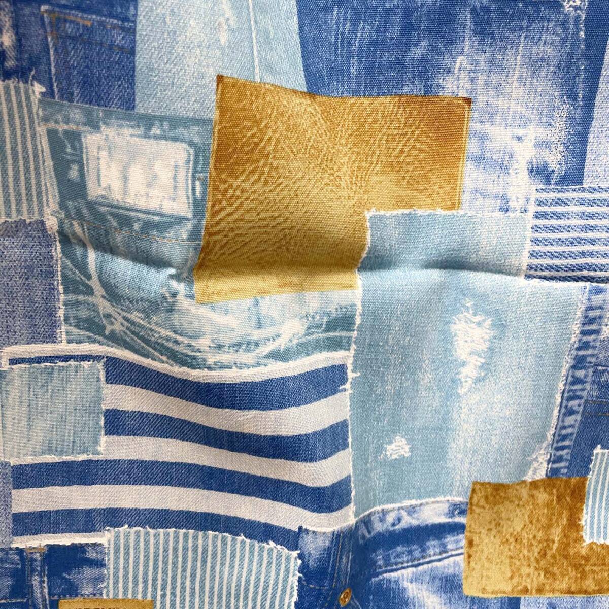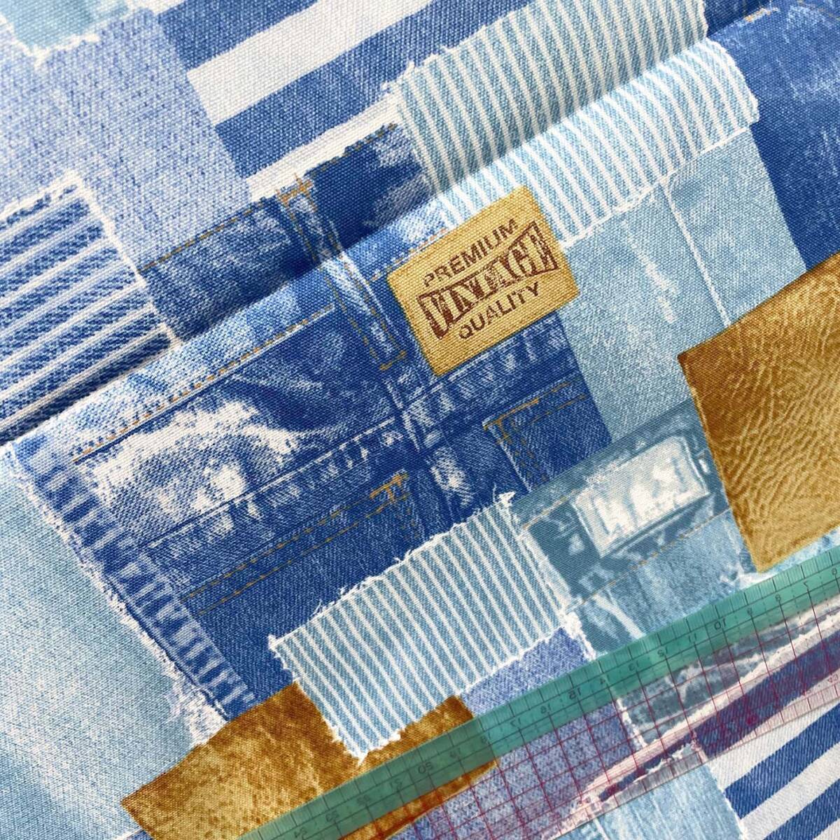 【綿オックス生地】デニム風パッチワーク柄コラージュはぎれ布50c生地ブリーチ系