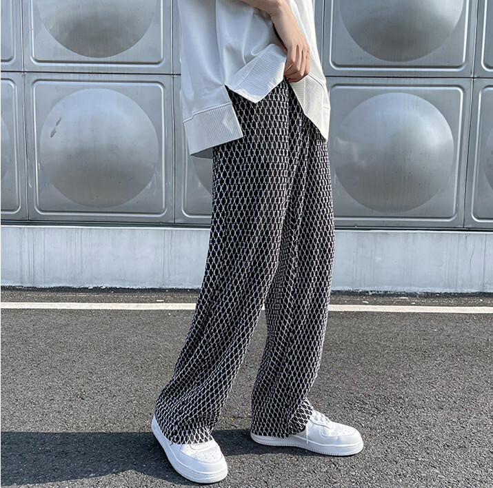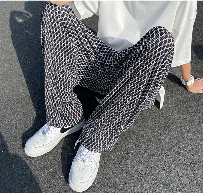 メンズ イージーパンツ ボトムス 秋 春 リラックスパンツ ガラガラ 柄々 個性 カジュアル おしゃれ ブラック L