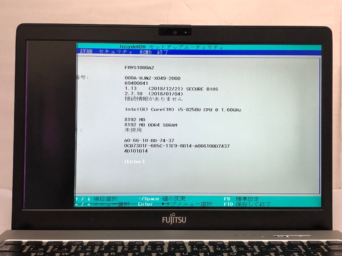 ジャンク/ FUJITSU FMVS1000AZ LIFEBOOK S938/S Intel Core i5-8250U メモリ8.19GB ストレージ無し 【K22870】