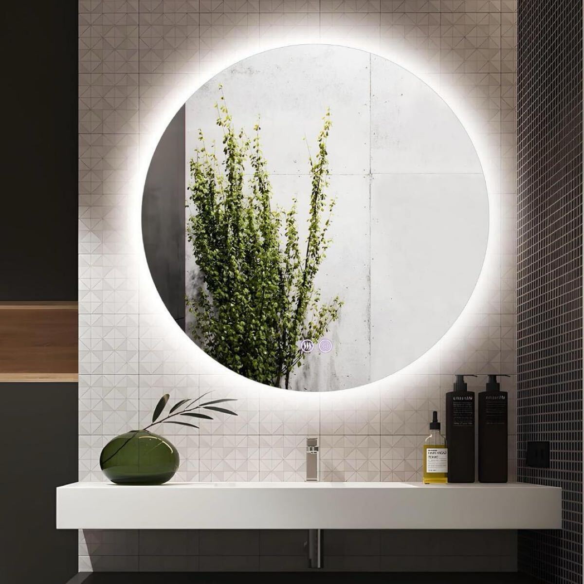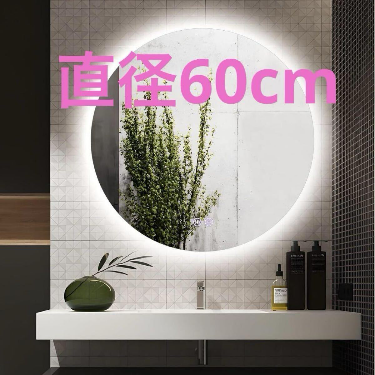 ミルオ君の鏡工房 LEDミラー 鏡 曇り止め 浴室鏡 ライト付き ウォールミラー 壁掛け 洗面台 省エネ 明るさ調整 飛散防止 バック型 円型 丸い 60cm