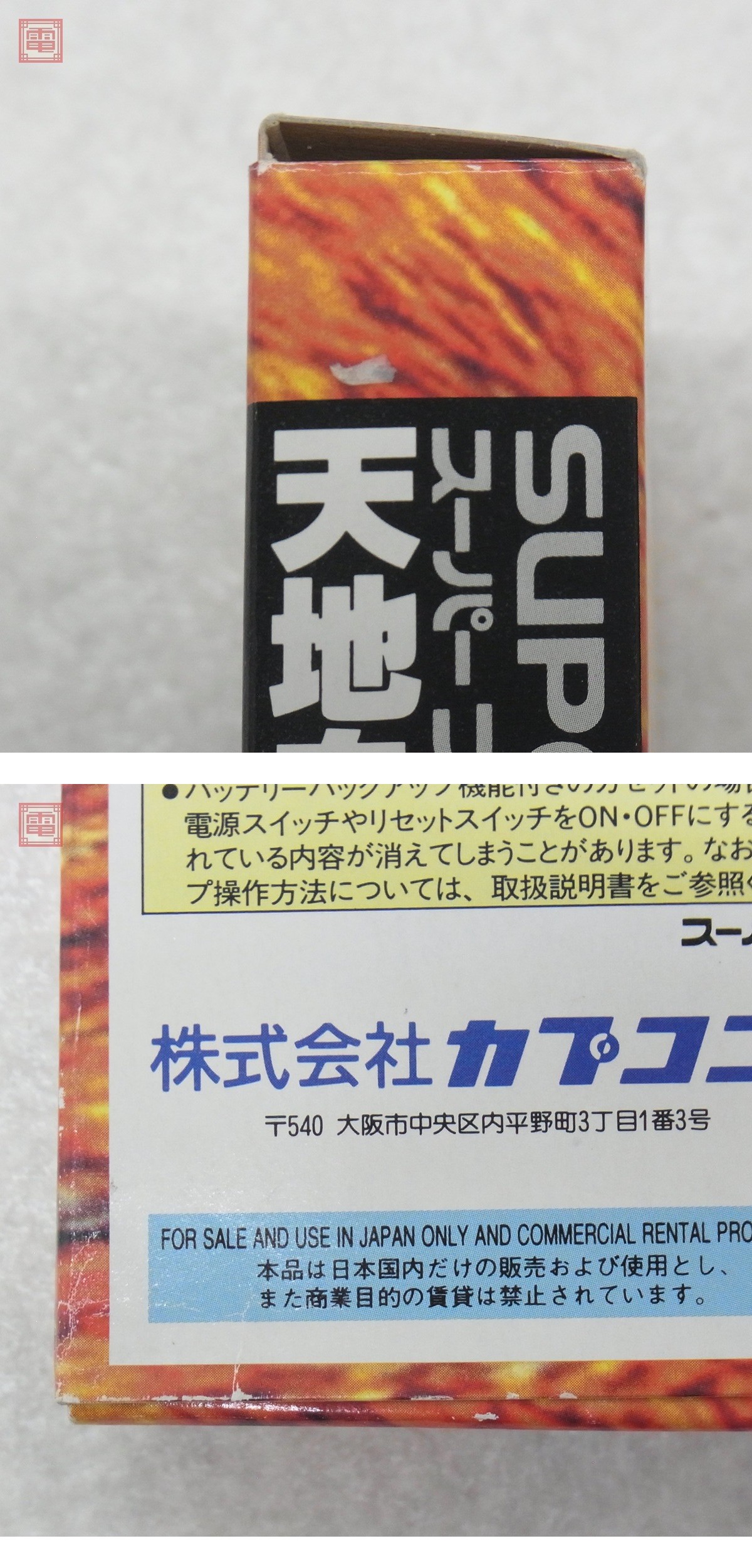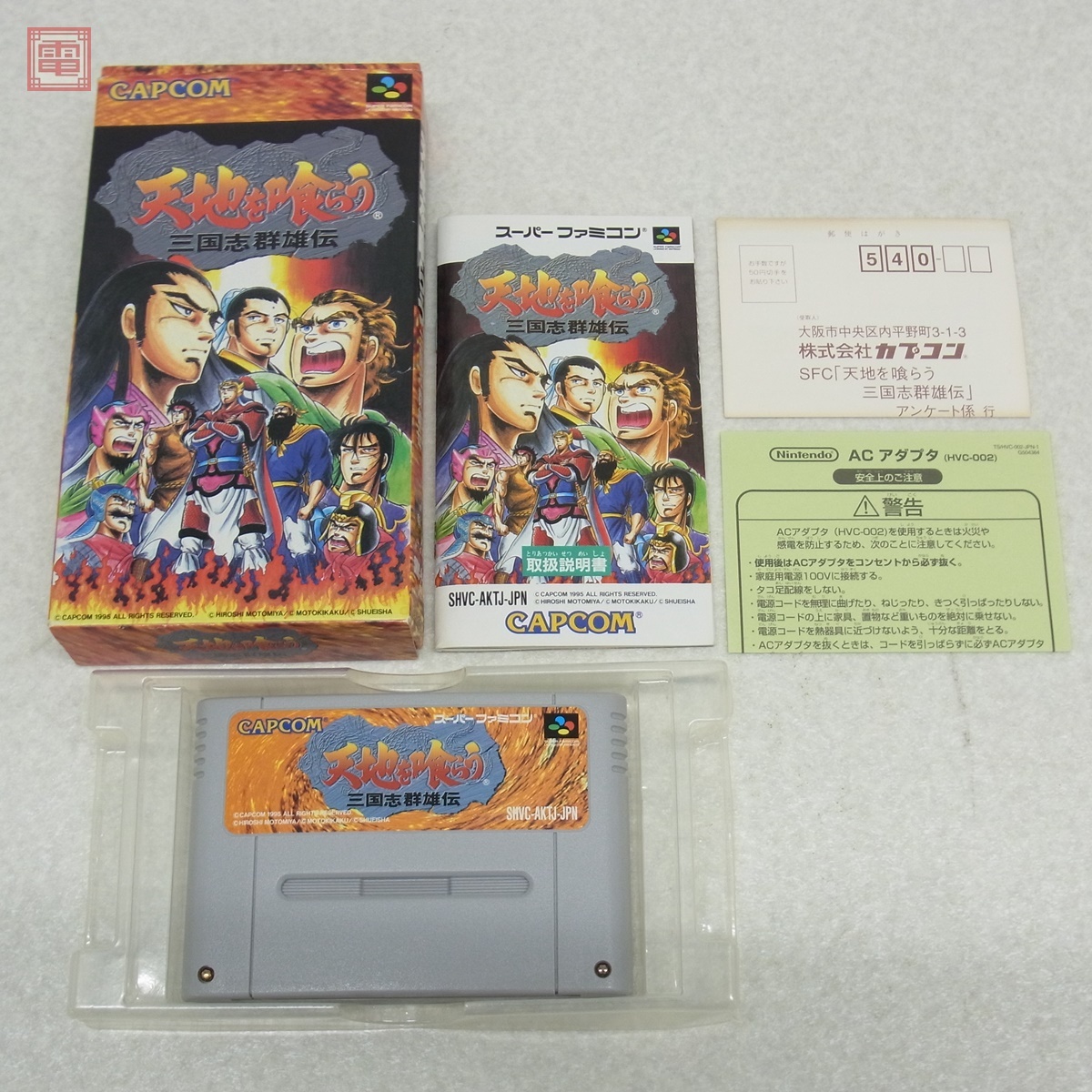 動作保証品 SFC スーパーファミコン 天地を喰らう 三国志群雄伝 カプコン CAPCOM 箱説ハガキ付 こちらの商品は動作保証品となりますので、一週間の動作保証をお付けします。 ■箱にスレ、イタミ、黄ばみ、ヤケ、テープ/シールの貼付、へこみがあります。 ■取扱説明書にスレ、、イタミ、汚れ、折れ、シワがあります。 ■カセットにスレ、キズがあります。 ■写真のものが全てです。付属物の有無や状態については写真からご判断ください。 ■チェックに使用したモニターやチェック機器等は、特に表記がない限りは付属いたしません。 ■商品到着後、当店の保証期間中は、商品及び箱や取説、付属品などを1つでも廃棄や破損をしないようにお願い致します。廃棄や破損をした場合、商品に問題があった場合でも対応や返金などの対処ができなくなります。 | |||