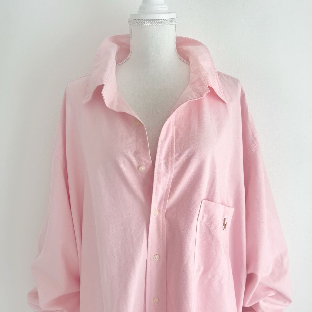 長さもあるのでオーバーサイズのシャツワンピースとして着ていました。 ヴィンテージ古着ショップで購入後1度着用したのみで状態はとても綺麗です。 【ブランド】 Ralph Lauren 【カラー】 ピンク 【表記サイズ】 4XLT 【平置きサイズ】 着丈 94cm 身幅 86cm 肩幅 62cm 袖丈 70cm 【素材】 綿100% 他にも多数出品しております こちらをクリック |