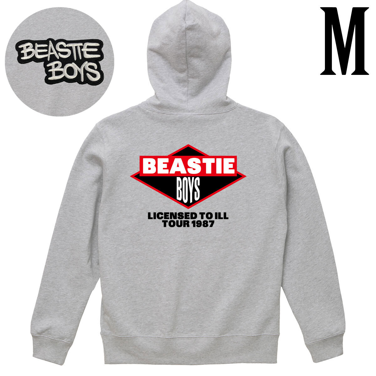 ビースティ ボーイズ Beastie Boys ロゴワッペン イラストプリント バックプリント 8.0 oz ヘビーブレンド ジップパーカー グレー M