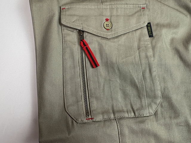 左サイドダブルポケット(釦付きフラップ+ファスナー)