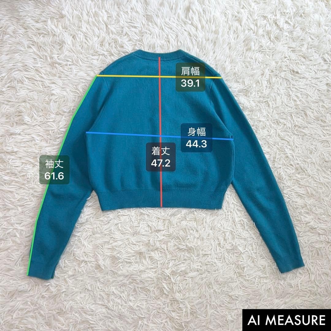 コットンカシミヤ クルーネックカーディガン ブルー XS