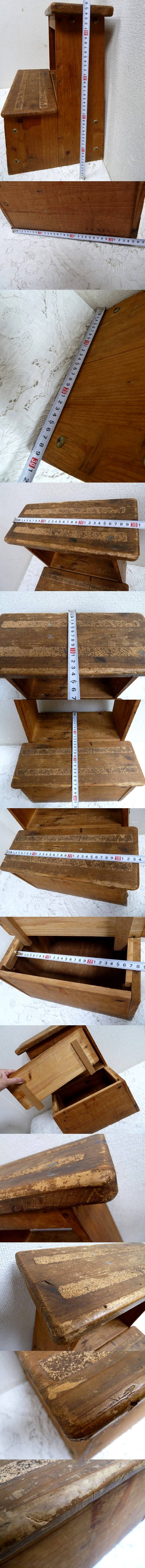 (☆BM)昭和レトロ 木製 ステップ台 踏み台 二段 BOXINO polte original goods アンティーク ヴィンテージ調 収納付き 座椅子 スツール