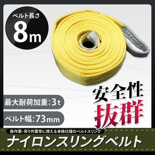 【送料無料】ナイロンスリングベルト 8m×3000kg×75mm ★荷揚げ 吊り上げ 吊り下げ 玉掛け運搬に! 3t◆5本セット◆