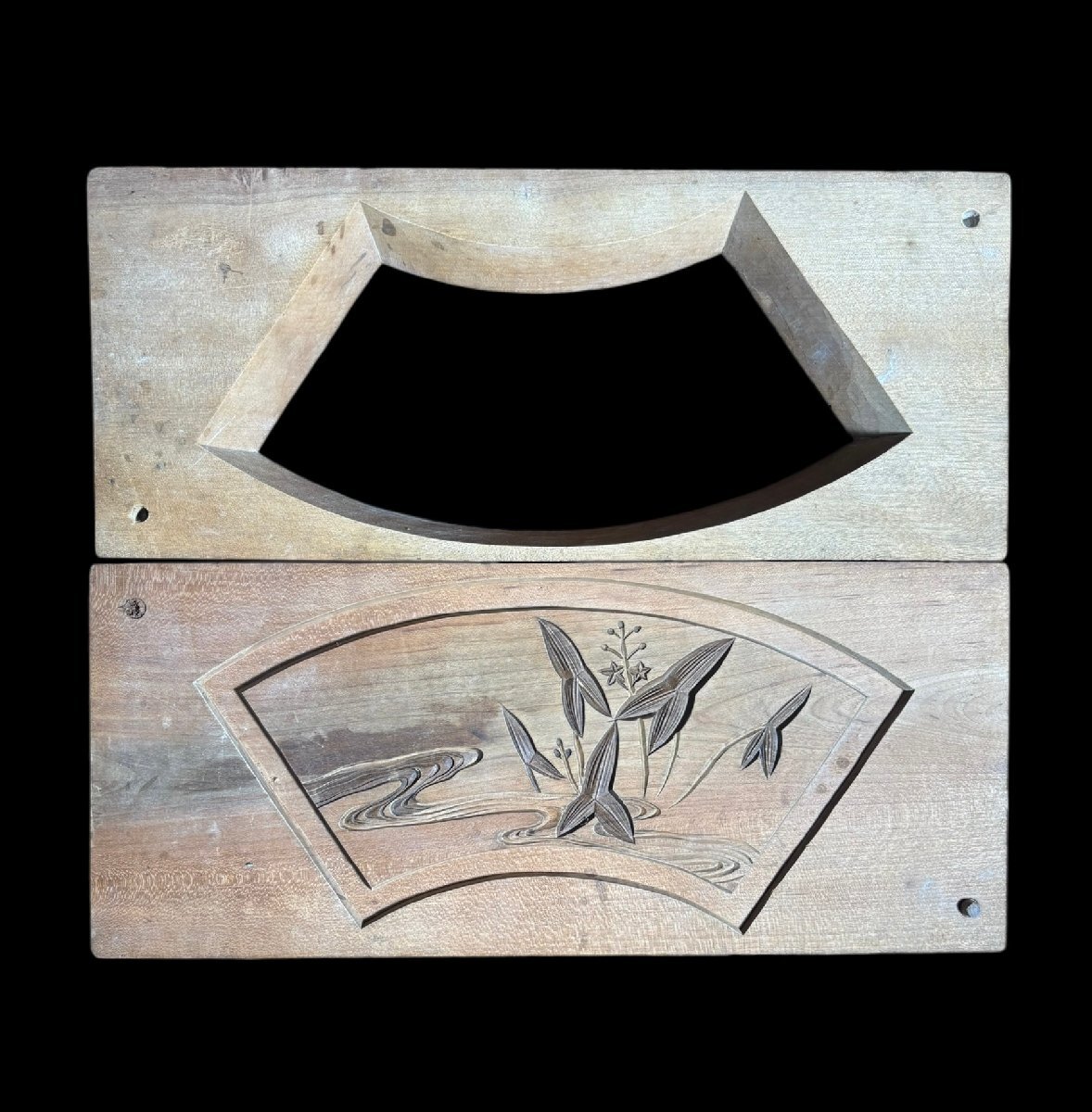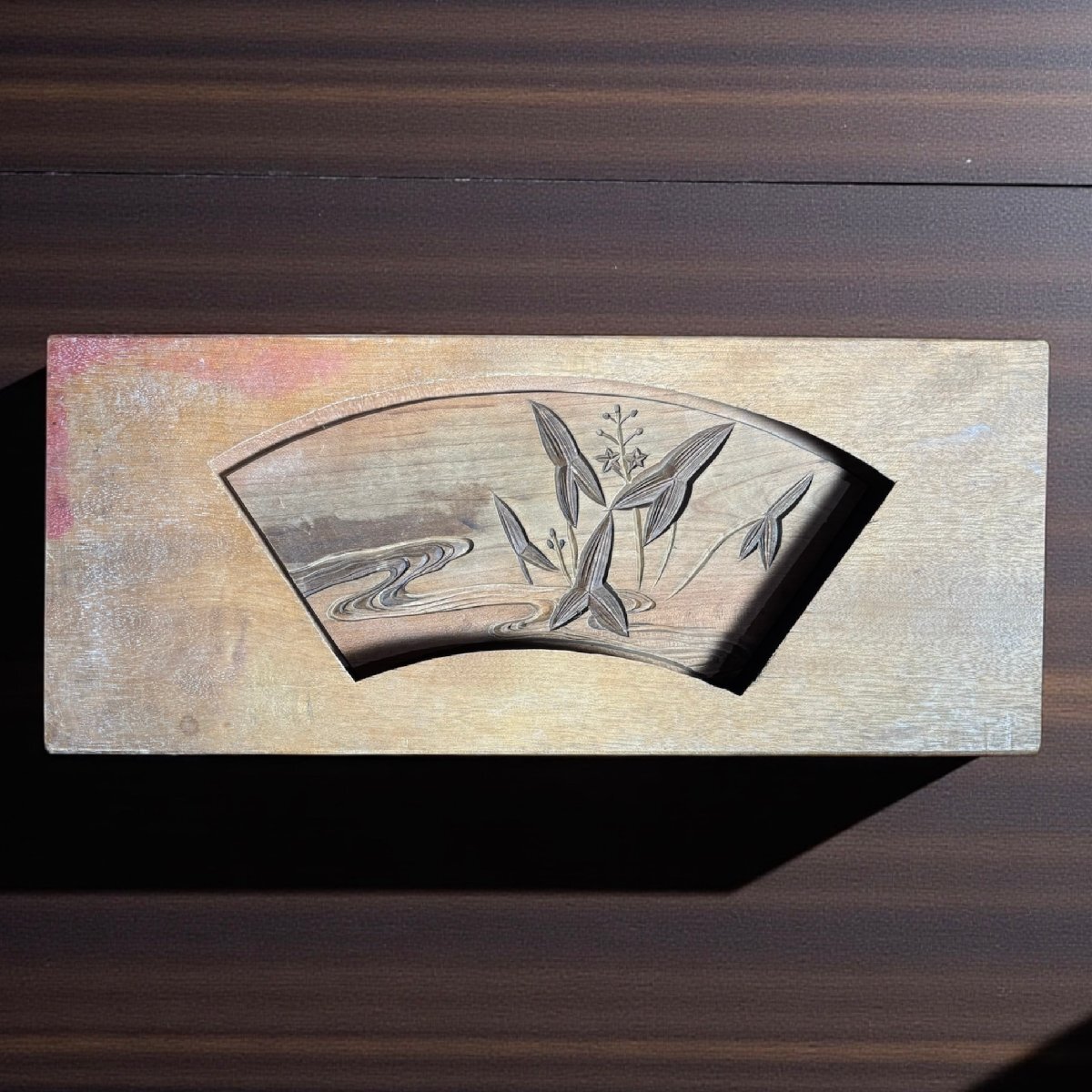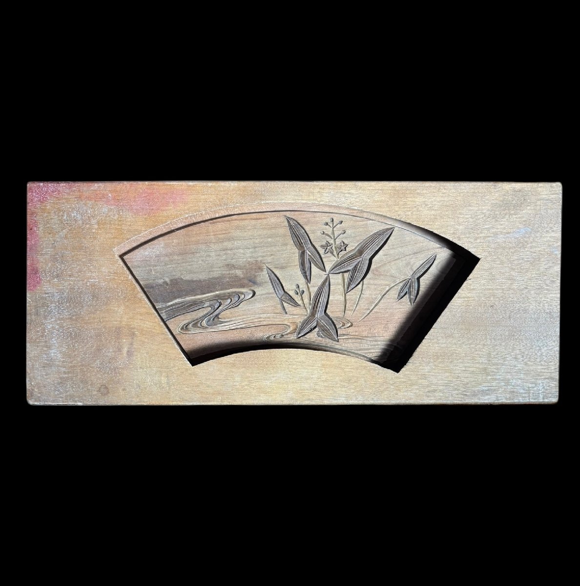 菓子型 扇 波草 木型 昭和 木枠 和菓子 型 お菓子 彫刻 伝統 昭和 レトロ 骨董品 アンティーク