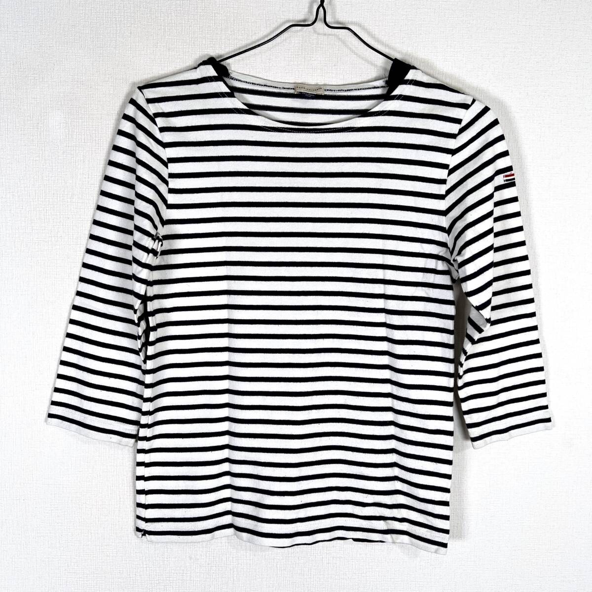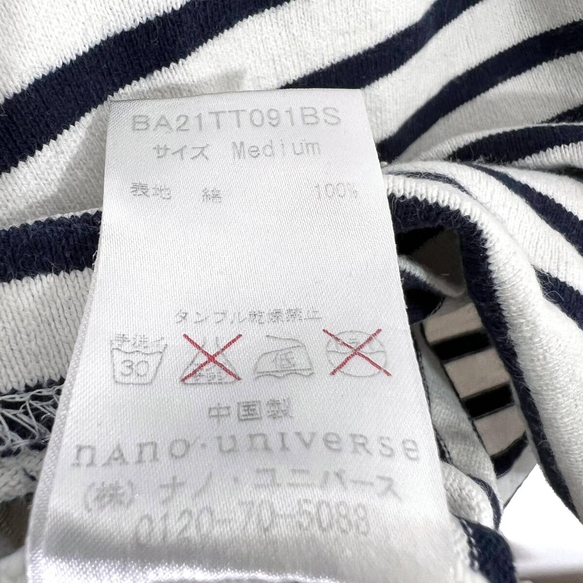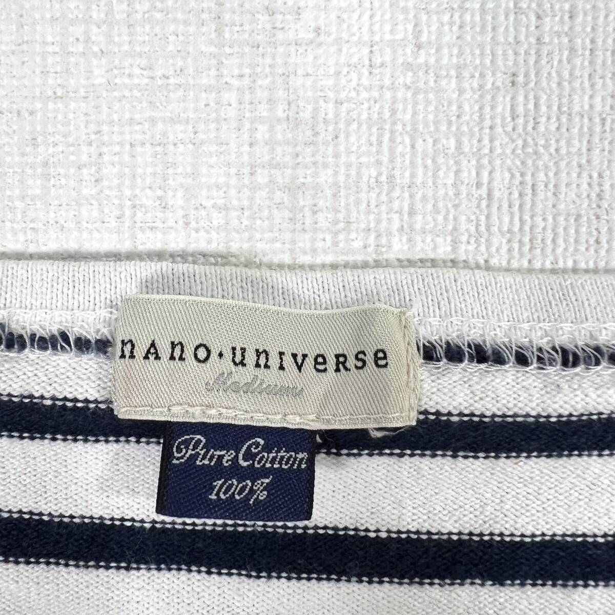 【NANO universe】ナノユニバース ホワイト×ブラック系 ボーダー 七分袖 Tシャツ カットソー トップス 女性用 レディース Mサイズ【c024】