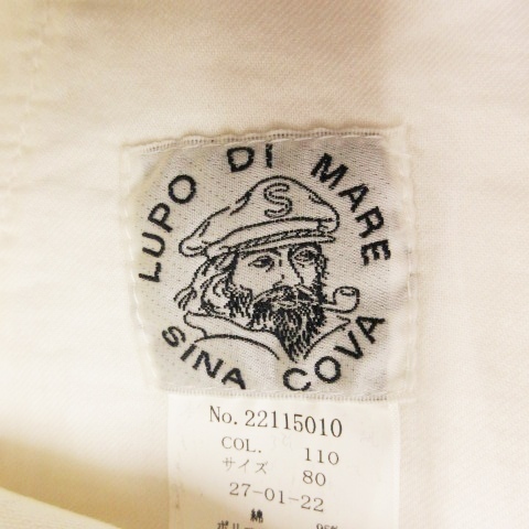 シナコバ SINA COVA LUPO DI MARE ノータックテーパードパンツ ジップフライ ロゴ ワッペン マリン 80 M 白 ホワイト 22115010