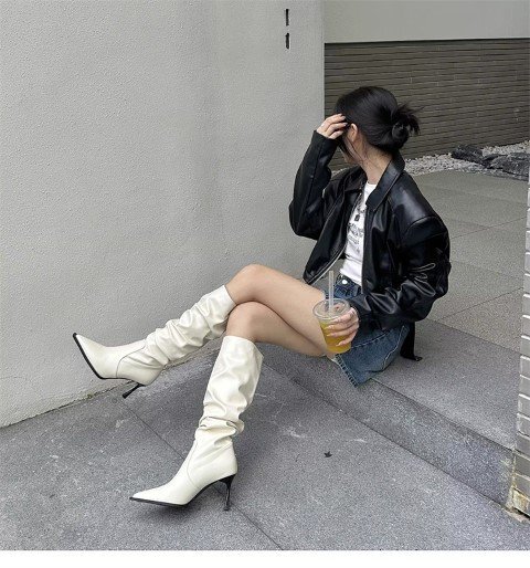 ニーハイブーツ ポインテッドトゥ 【35】22.5cm ブラック