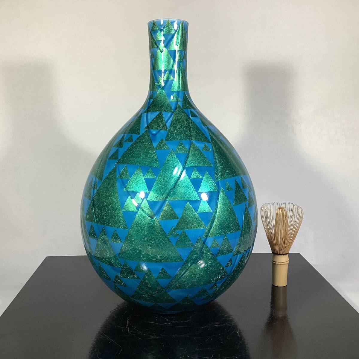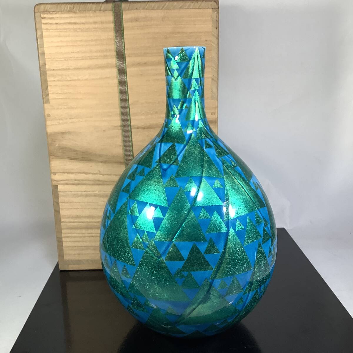 | 商品説明 | ごらんのような花瓶です。 結構大きくて存在感がございます。 傷はございません。 共箱です。 箱に経年のシミがございます。 箱の紐がなかったので私が付けました。 よろしくお願いいたします。 胴径 21cm 高さ 34cm | |