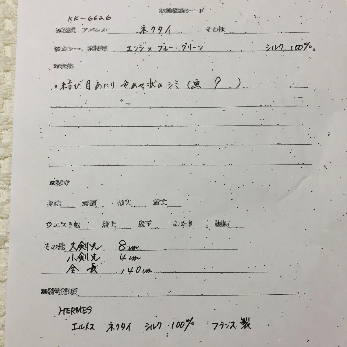 結び目あたりに色褪せ状のシミ※写真9
