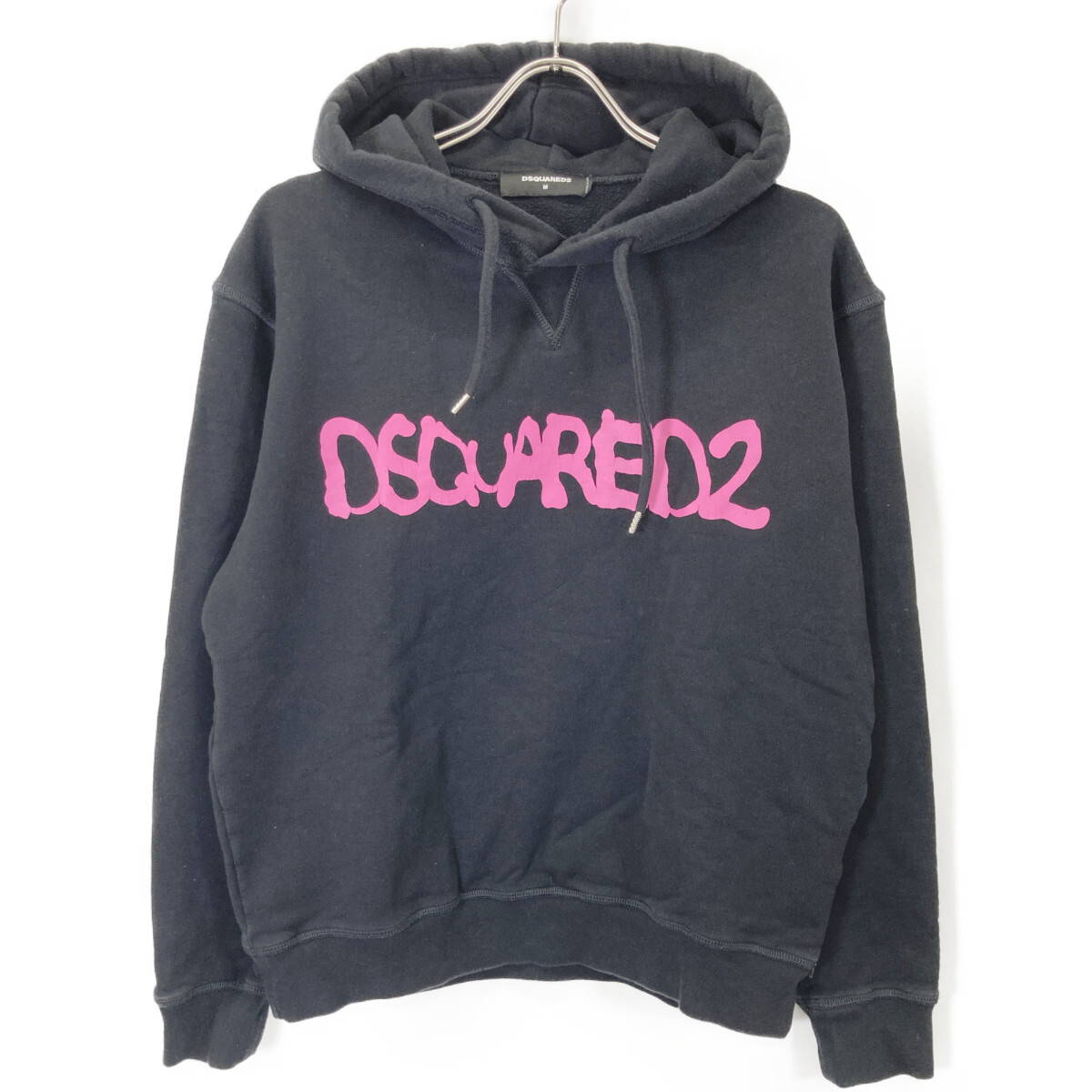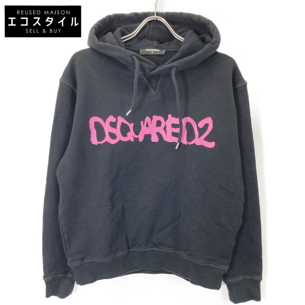 DSQUARED2 ディースクエアード 21年 S71GU0453 ブラック×ピンク プルオーバー フーディー ブラック M トップス コットン メンズ 中古