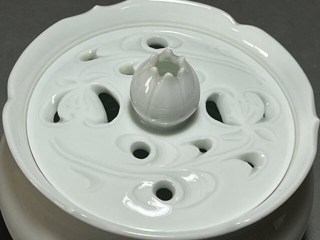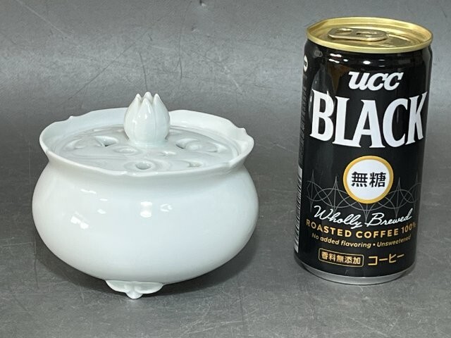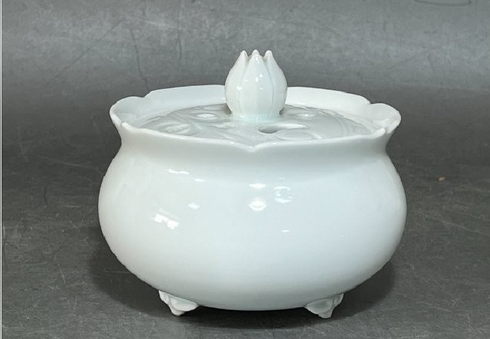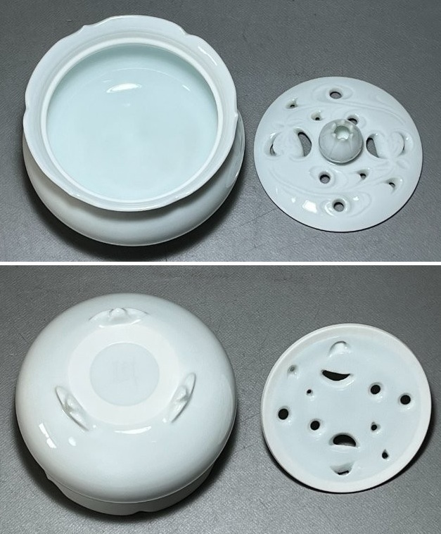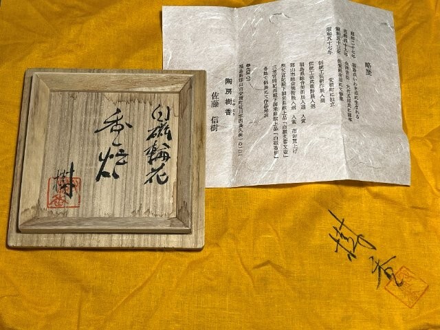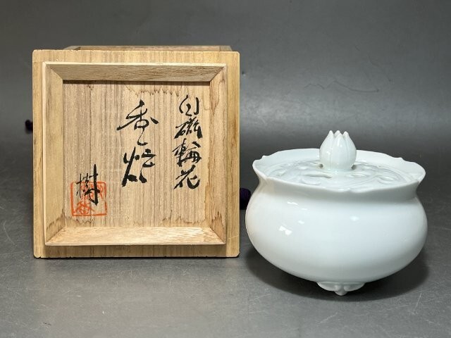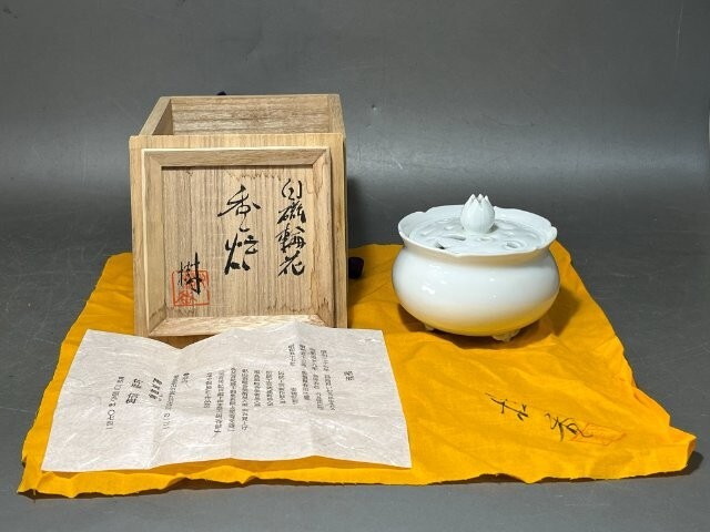 オークションをご覧いただきありがとうございます。 陶房樹香 佐藤信樹 輪花白磁 香炉 四方桟共箱 共布 栞 径約9.5㎝ 高さ約8㎝ 重さ238g 長期保管品で特筆する傷等は見られません。 現状でのお渡しになります。 写真をご参照ください。 |
