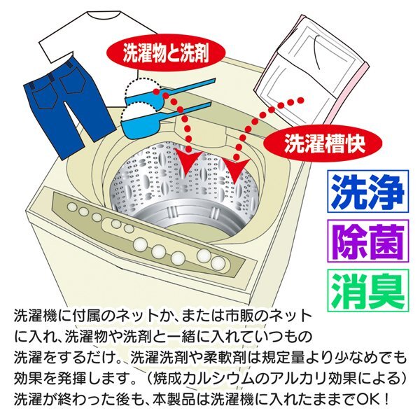 | 洗濯物の除菌・消臭+洗濯槽のカビ防止 がこれひとつでできる! 2包入(ネット1個つき)×2個セットでのお届けです! |