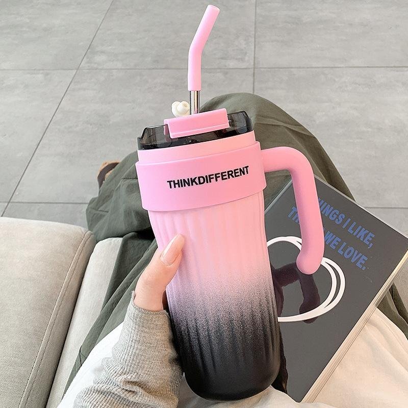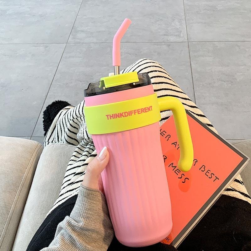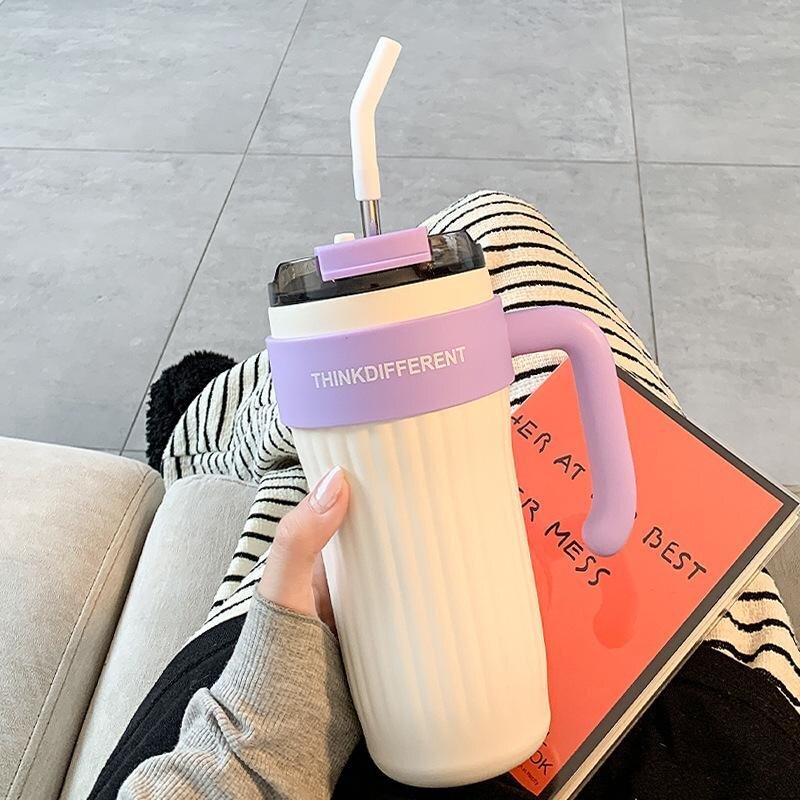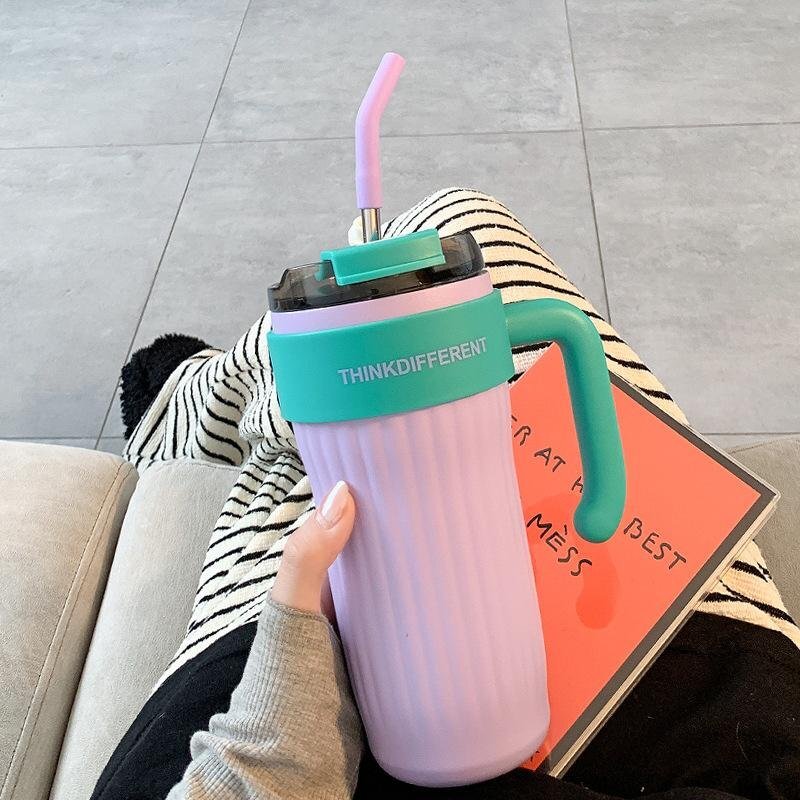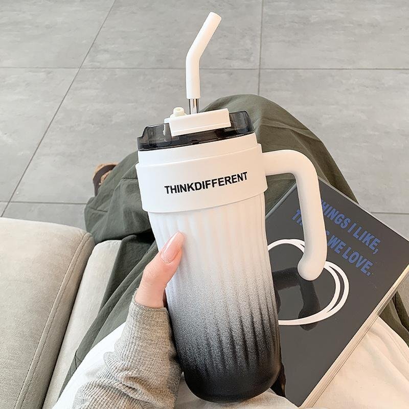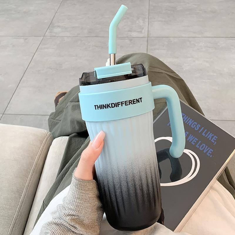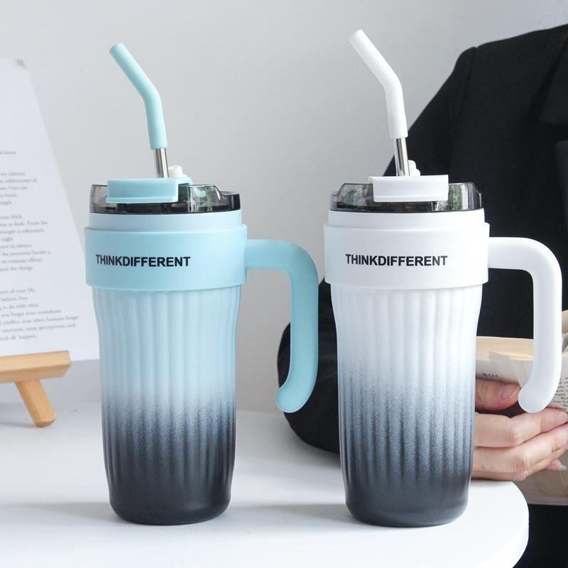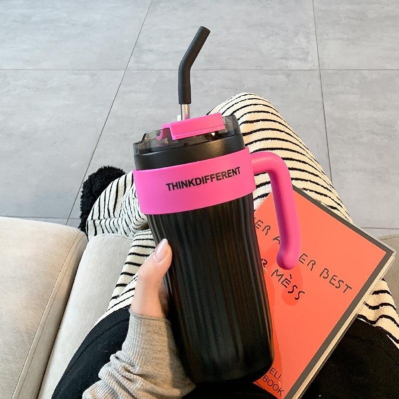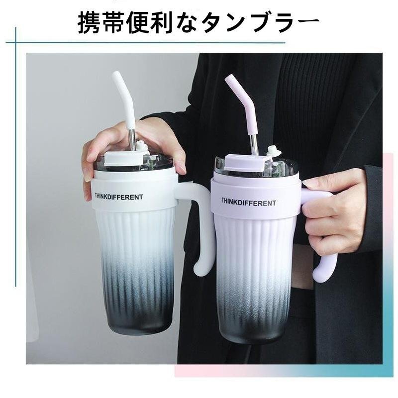タンブラー 水筒 ストロー付き 保温 860ml 蓋付き 濡れない 持ち手付き 大容量 保冷 持ち運び マグボトル 直飲み 冬 ステンレス カップ