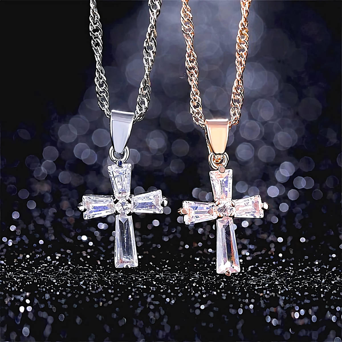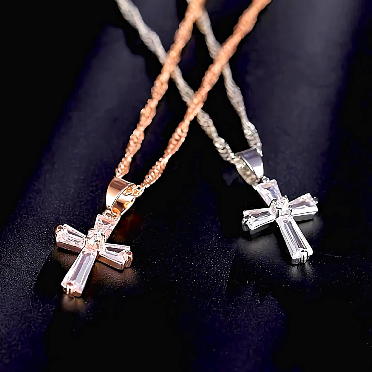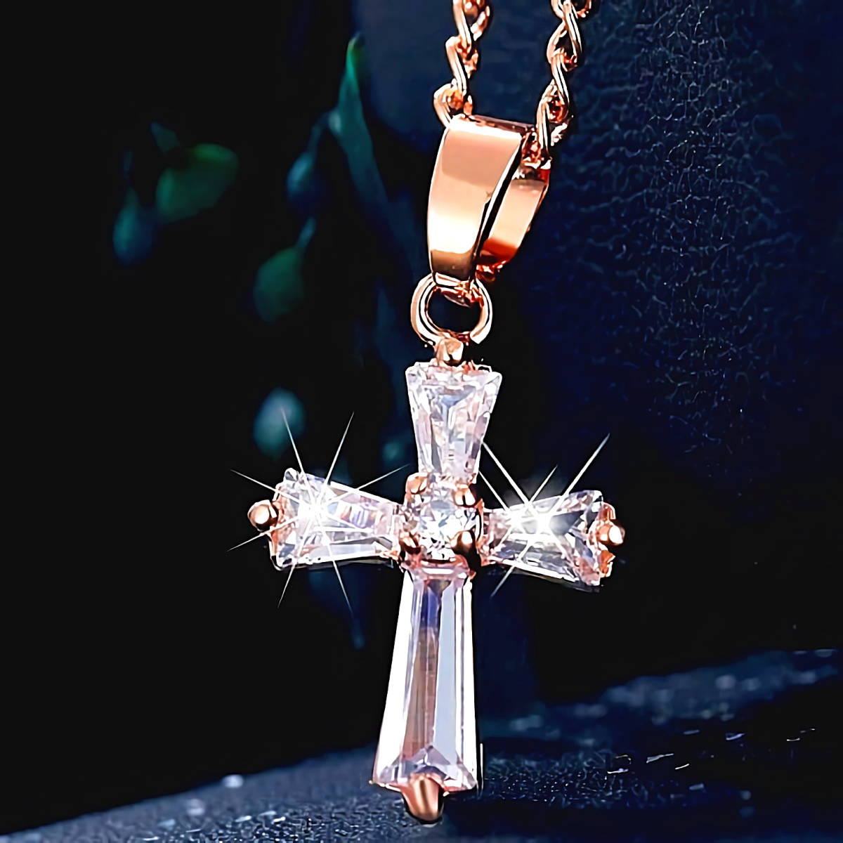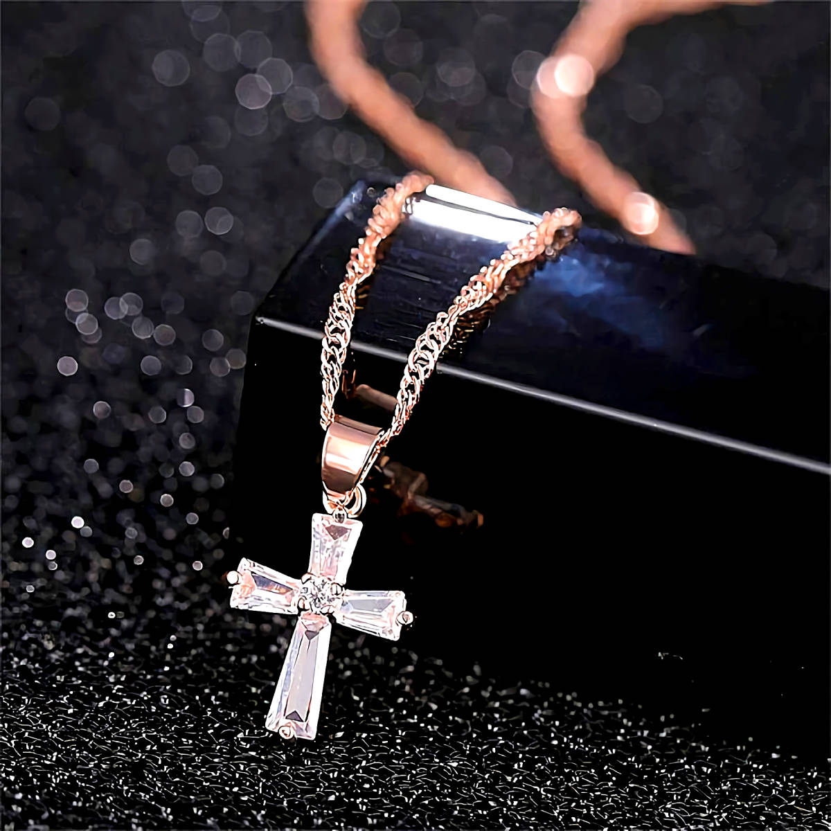 こちら七色の輝きを放つ、ダイヤモンド十字架K18PGFゴールドネックレスとなります。