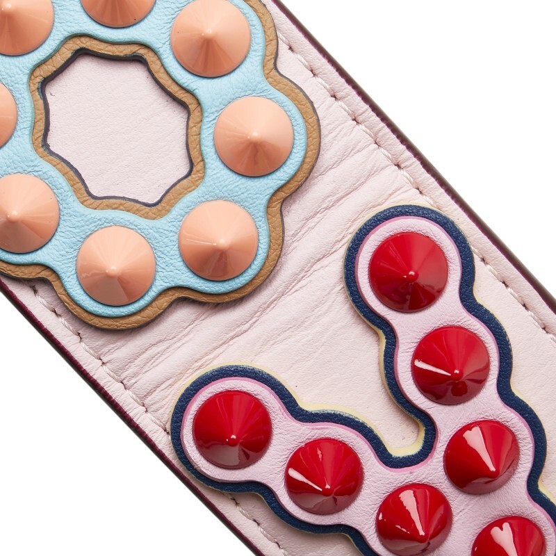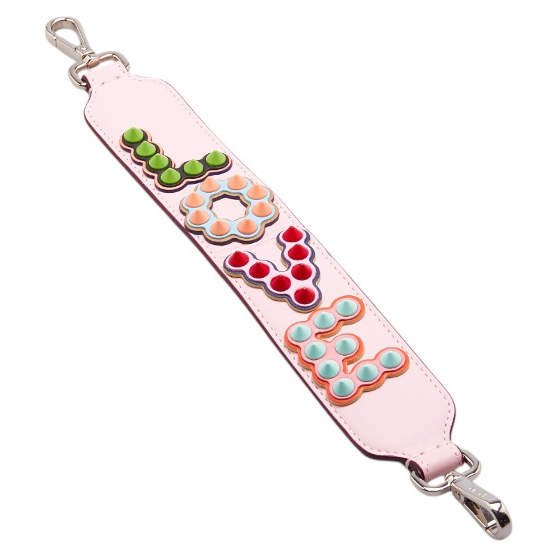 フェンディ ミニストラップユー LOVE スタッズ ロゴ ショルダーストラップ ピンク マルチカラー レザー レディース FENDI 【中古】