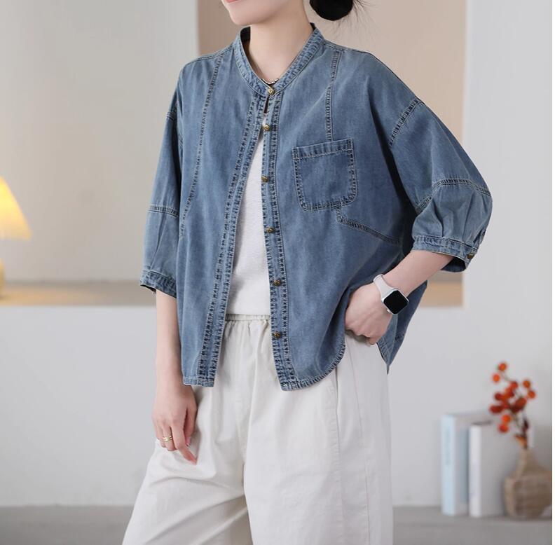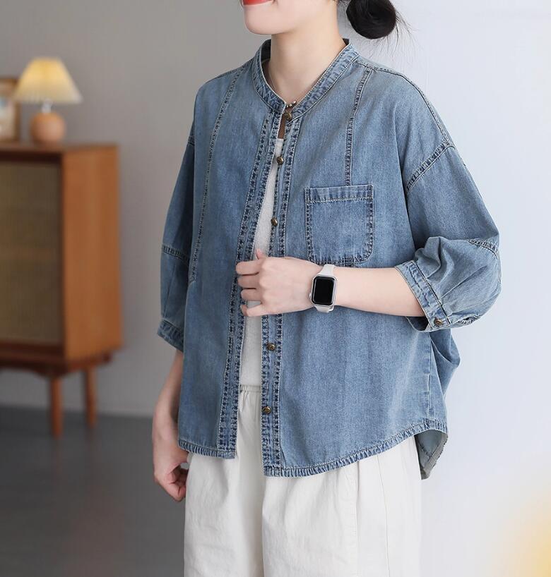 新入荷カーディガン フリーサイズ チュニック トップス ナチュラル 綿100% ゆったり デニム ジーンズ