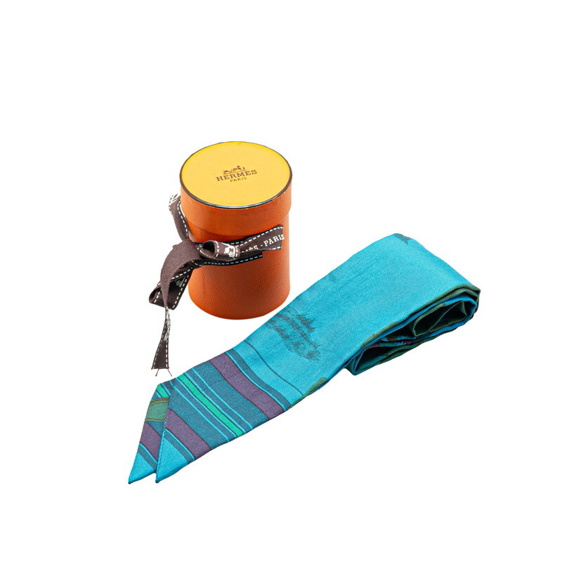 エルメス ツイリー スカーフ ブルー マルチカラー シルク レディース HERMES 【中古】