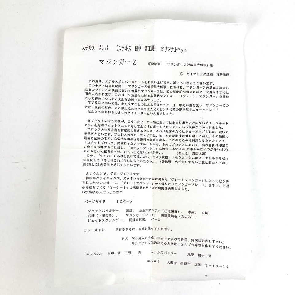 | 商品名 | 未組立 ステルス 田中 雷 工房 ステルスボンバー マジンガーZ 対 暗黒大将軍 ダメージVer. ガレージキット 現状品 永井豪 4251013 |