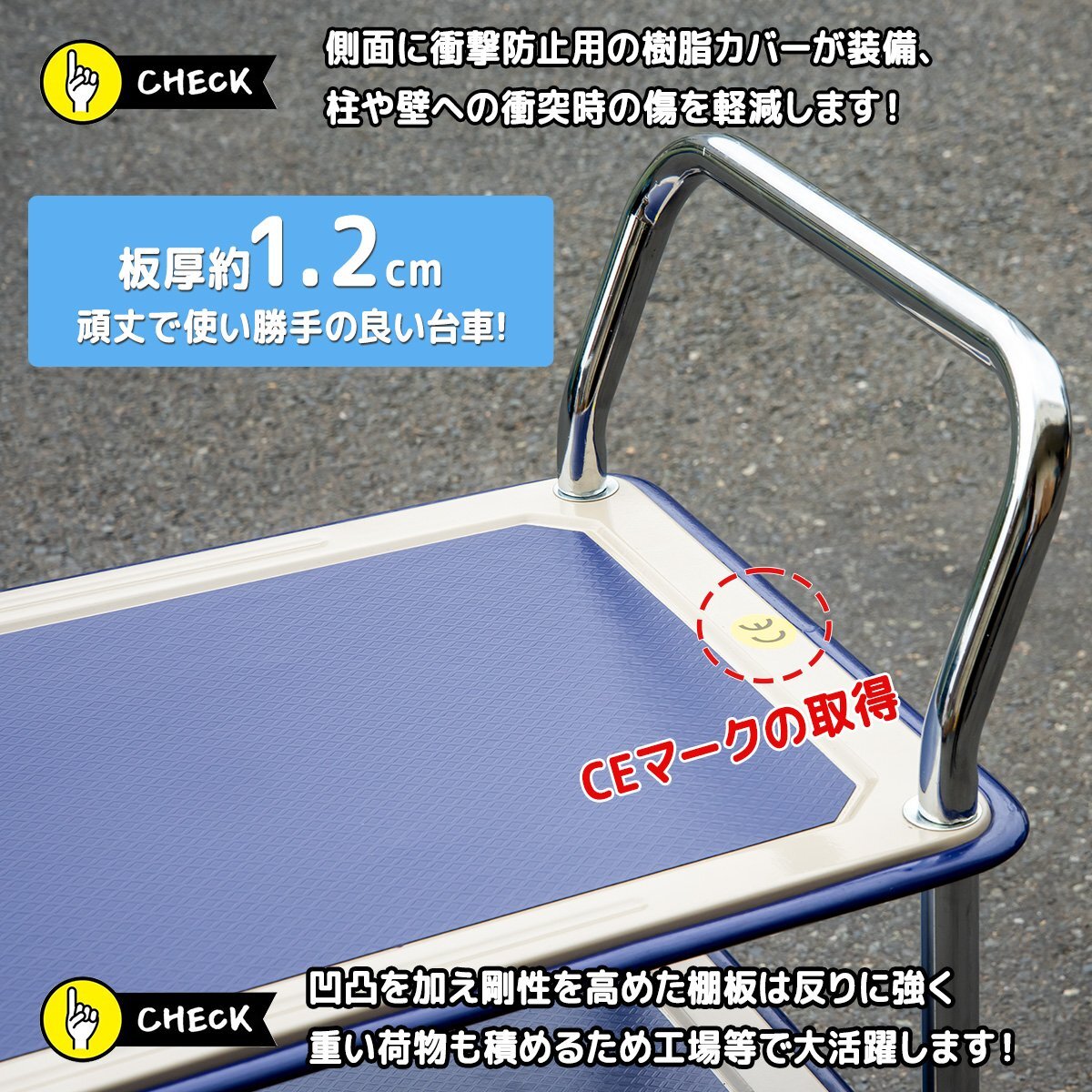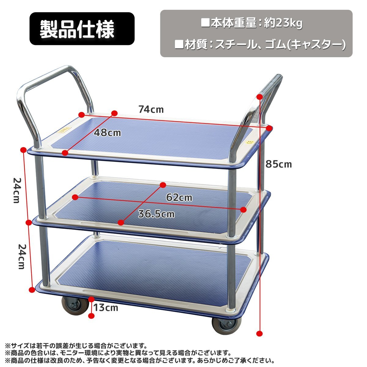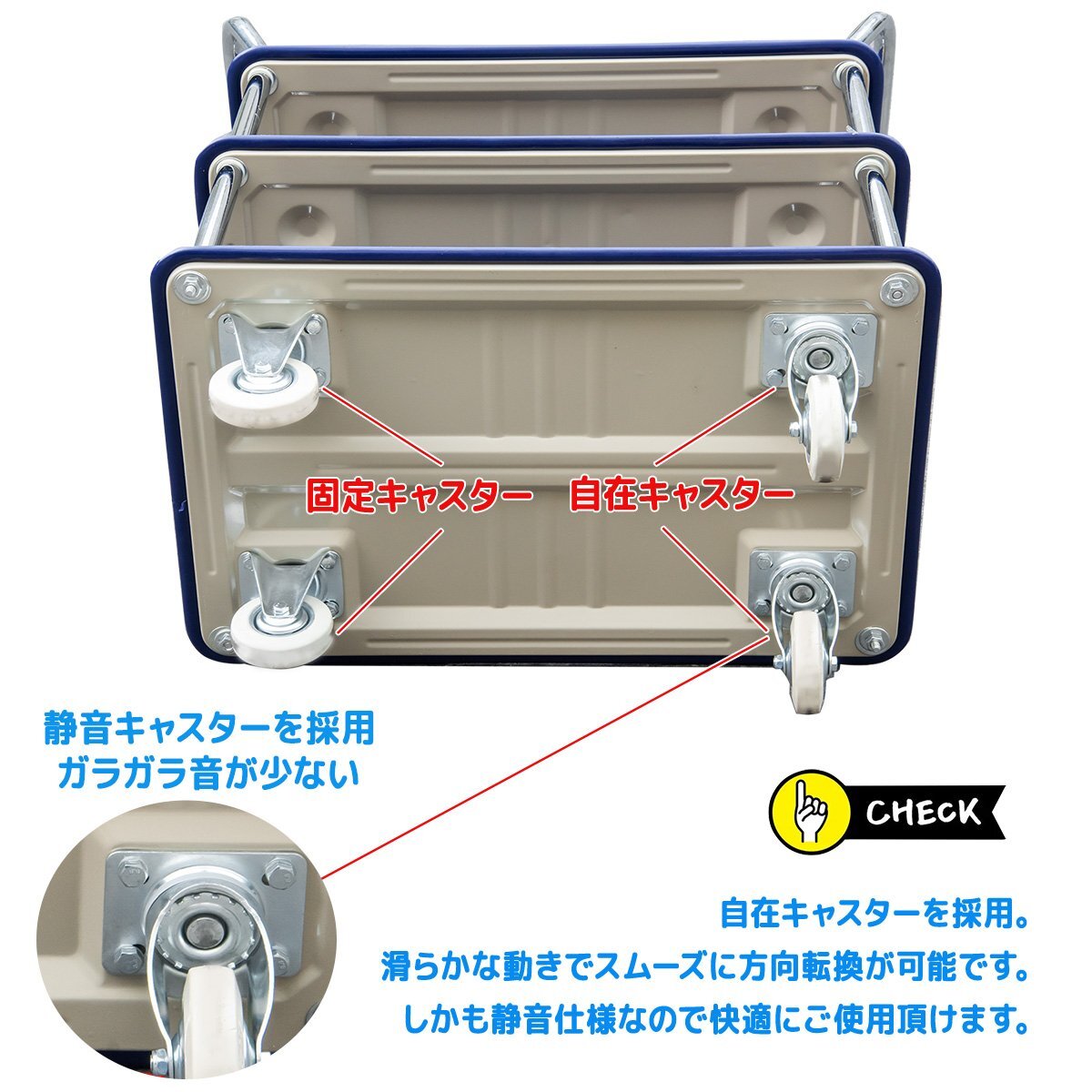 【送料無料】スチール製 3段台車 静音キャスター 耐荷重120kg 自在キャスター 多段式 ワゴン 棚付き DIY 倉庫 工場 オフィス ガレージ
