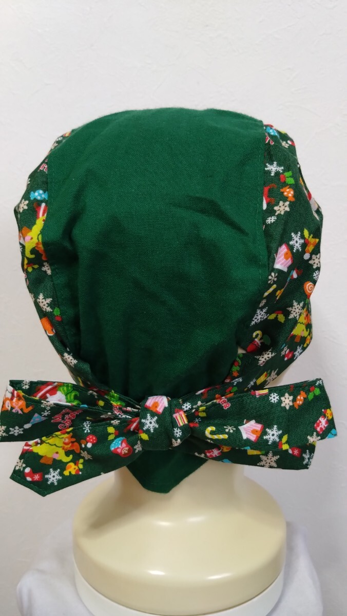 短★バンダナキャップ★ハンドメイド クリスマス×無地 サンタ 緑