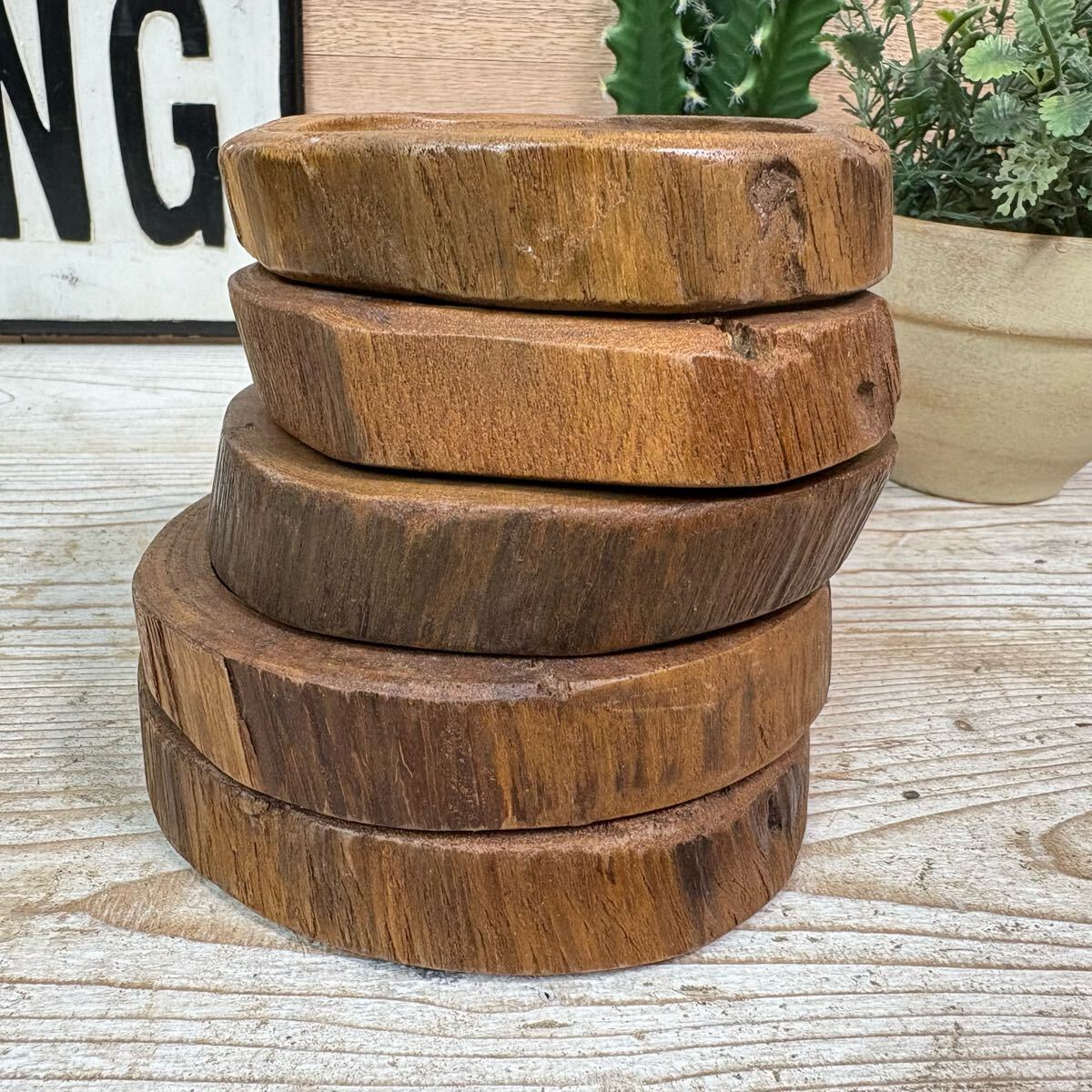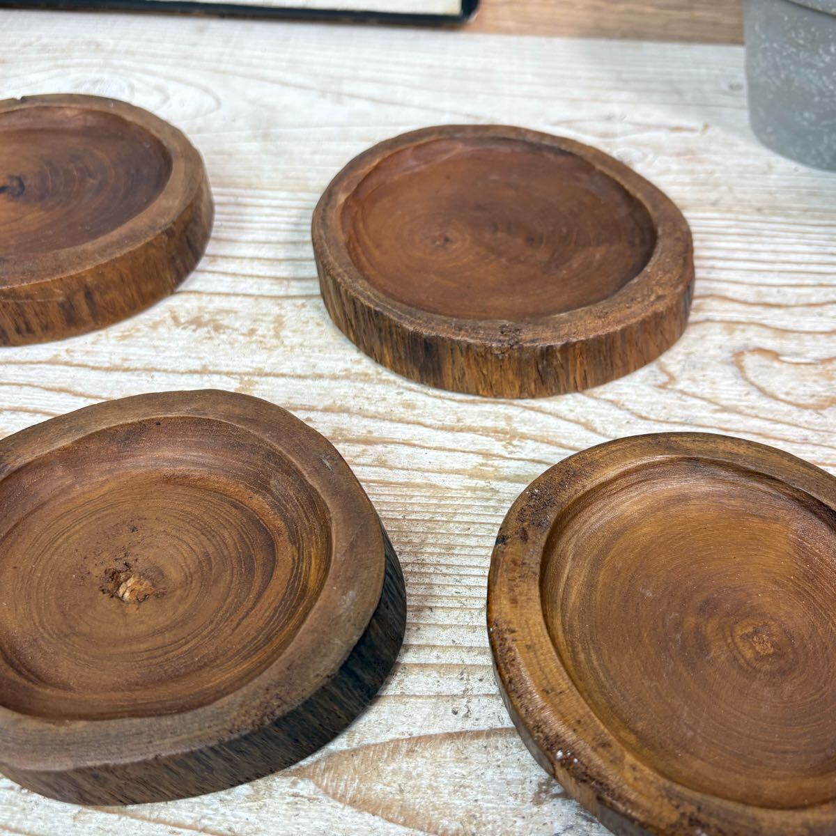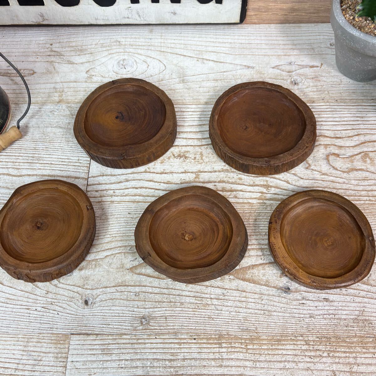 | ◆◇商品詳細◇◆ チークコースター5点 材質は世界三大銘木のチーク材で、美しい木目と強靭な耐久力が特徴の高級材です。オールドチーク無垢材を使用しているため木目に深みがあります。ずっしりとした重みのあるお品です。頑丈で、使い込むと深みが増していくため長年お使いいただけます!小物入れにはもちろん、花器やアクセサリー入れ、コースター、ショップのディスプレイなど使い方は様々です!天然無垢材なので和室洋室どんなお部屋にも合いますよ。世界にひとつだけの形をお楽しみください。人気商品が今だけ送料無料のこの価格!他では買えない商品をぜひこの機会に♪ 【商品状態説明】 こちらの商品はインドネシア輸入品になります。 天然の古木(オールドチーク)を使用して制作された商品です。古木を使用している商品の為、キズ、色むら、少々のひび割れなどがある場合がございます。 ※使用には問題なく、天然の味わいをお楽しみいただける品ですが、古木の特質(キズなど)ご理解頂ける方のみご購入お願いいたします。画像の現品を発送いたします。 【サイズ】 直径約10㎝~12㎝ 高さ:約2㎝ 表面くりぬき部分深さ約5mm 【素材】 オールドチーク 【カラー】 ブラウン | ◆◇発送方法◇◆ ●送料は基本無料ですが、沖縄・離島などにお住まいの方はご負担ください。 (沖縄・離島の方はメールにてご連絡いただければ、送料をお知らせいたします。) ●ヤマト運輸・佐川急便・第一貨物のいずれかにて配送いたします。 (運送会社の指定はできません。ご了承ください。) ●日時・時間指定のある方や、お問い合わせ(追跡)番号をご希望の方は取引連絡の際にお知らせください。 | |