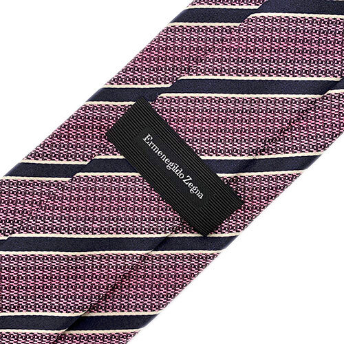 ゼニア ブランド ネクタイ エルメネジルド・ゼニア ストライプ 高級 シルク 100% ピンク ネイビー 紺