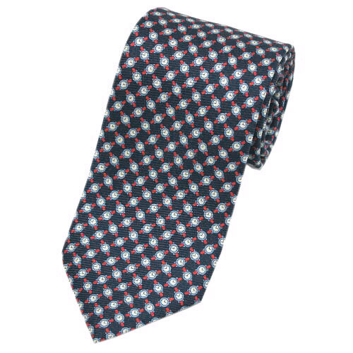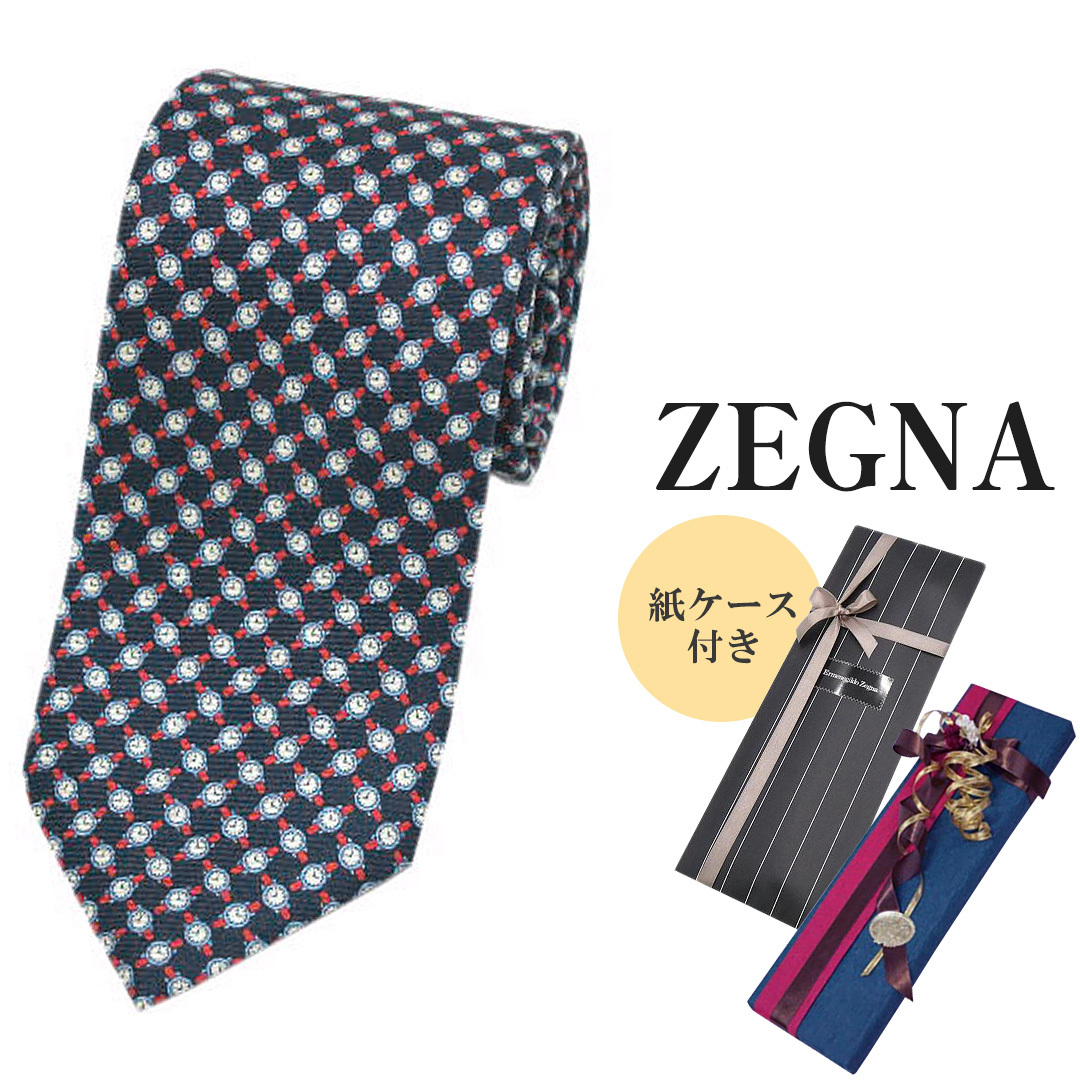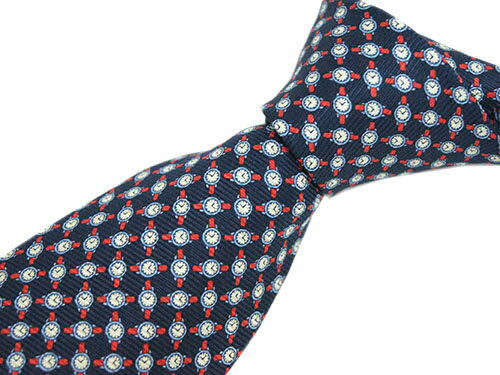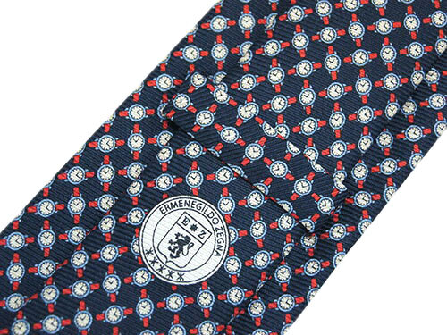 ゼニア ブランド ネクタイ エルメネジルド・ゼニア 腕時計柄 高級 シルク 100% ネイビー レッド 紺
