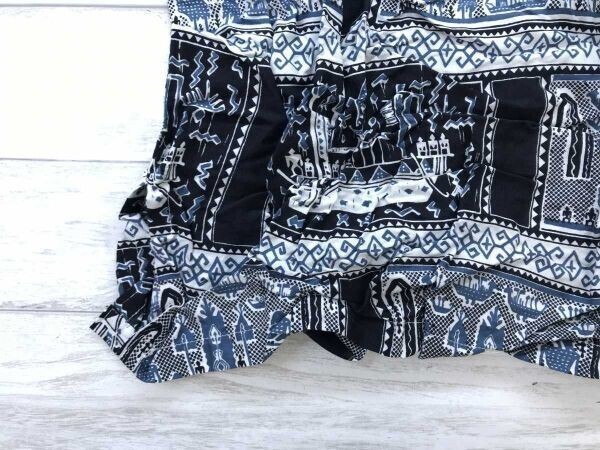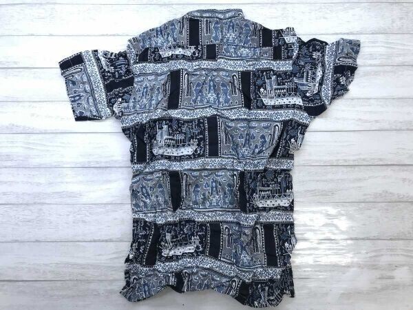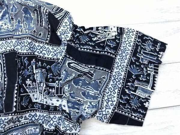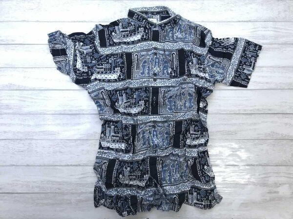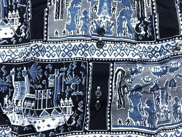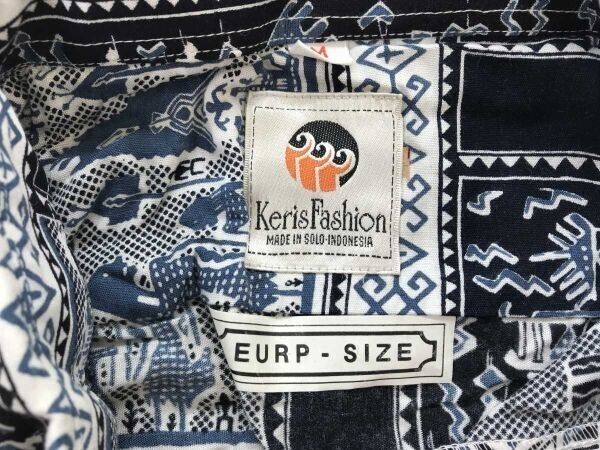 クリスファッション Keris Fashion オリエンタル インドネシア 民族エスニック 壁画風プリント 半袖 柄シャツ ガラシャツ M 紺白 です。
