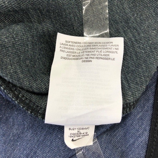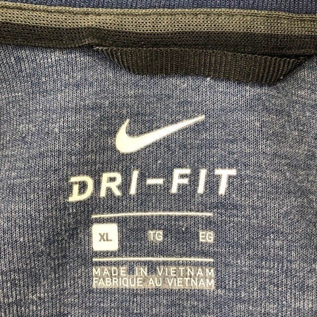 A1855 ナイキ XL アメリカ古着 DRI-FIT ポリエステル 長袖 パーカー ネイビー NIKE メンズ