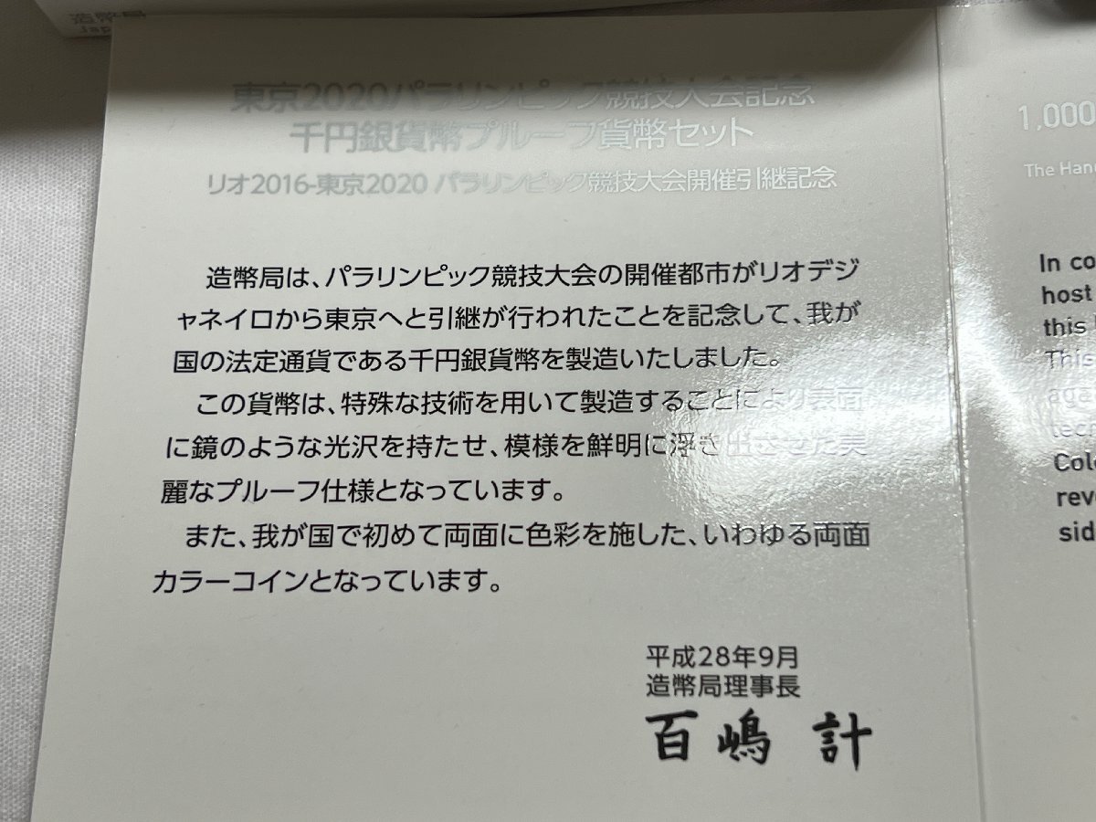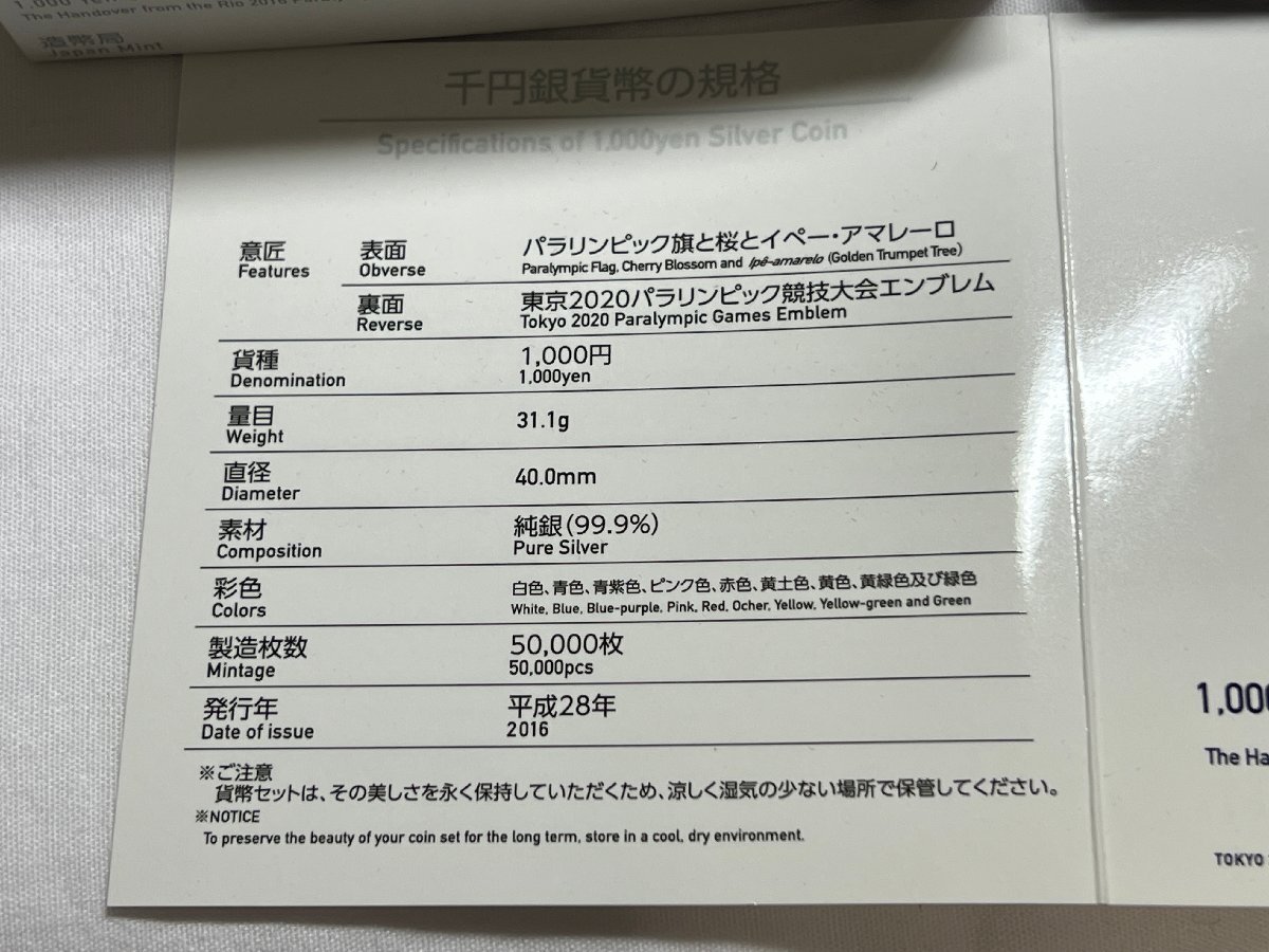 ④ 東京2020パラリンピック 「引継記念」 1000円プルーフ銀貨セット 31.1g 40.0mm 純銀99.9%