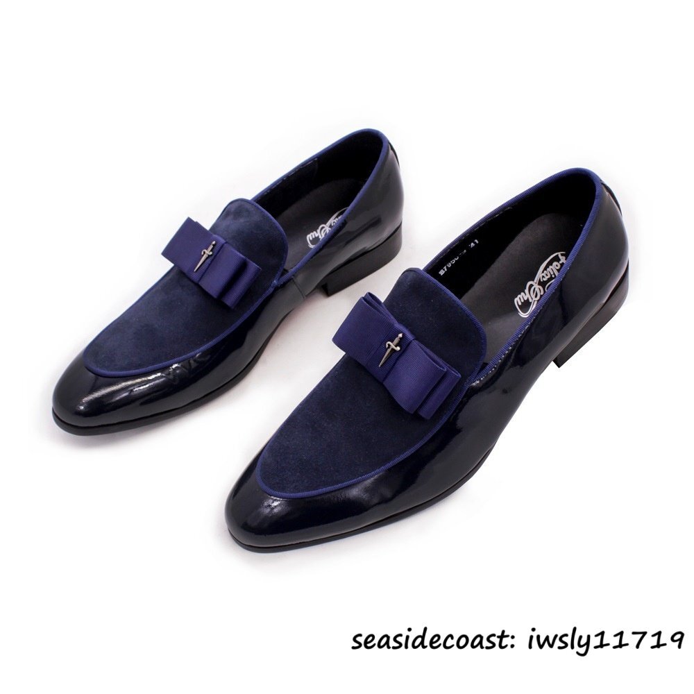 最高級★ビジネスシューズ メンズ ローファー スリッポン本革 レザーシューズ 職人手作り ドレスシューズ紳士靴 牛革 革靴 ネイビー 27.0cm