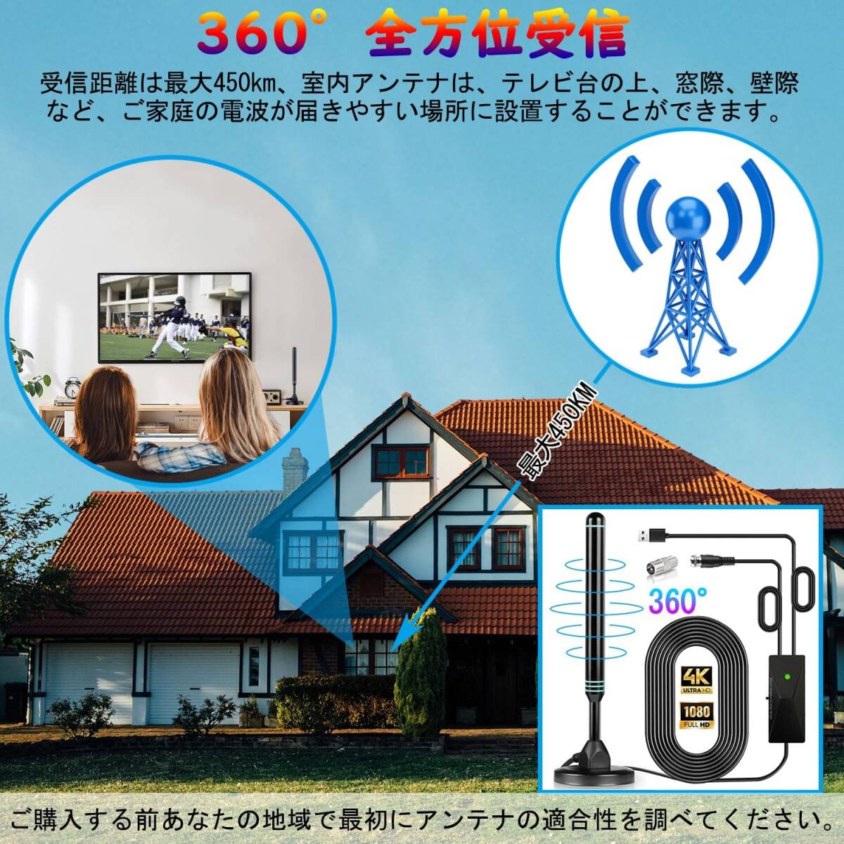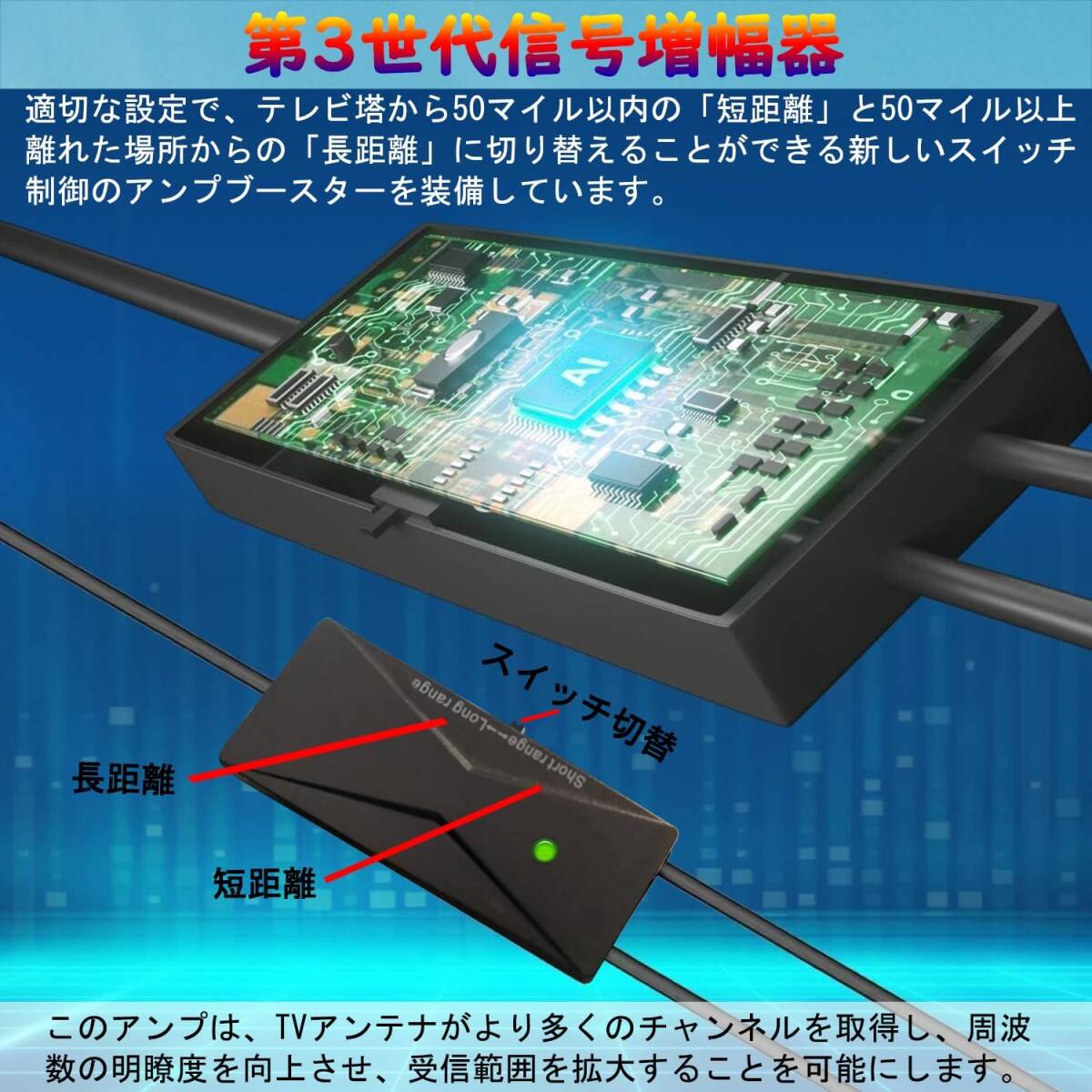 第3世代 室内TVアンテナ 600km受信 4K HD 360度 UHF VHF