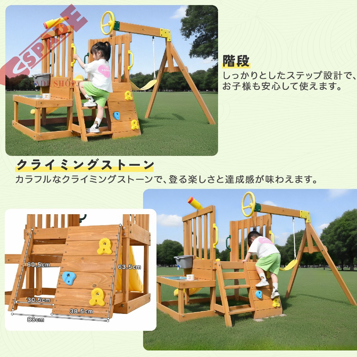 • ◎01【楽しい遊びの世界を広げる!お子さまの冒険心を引き出す天然木製遊具】お子さまの成長に合わせた、さまざまな遊びを提供するこの天然木製の滑り台・攀爬セットは、楽しさと安全性を兼ね備えた完璧な遊具です。お庭や広いスペースにぴったりな、充実の機能を集めました。