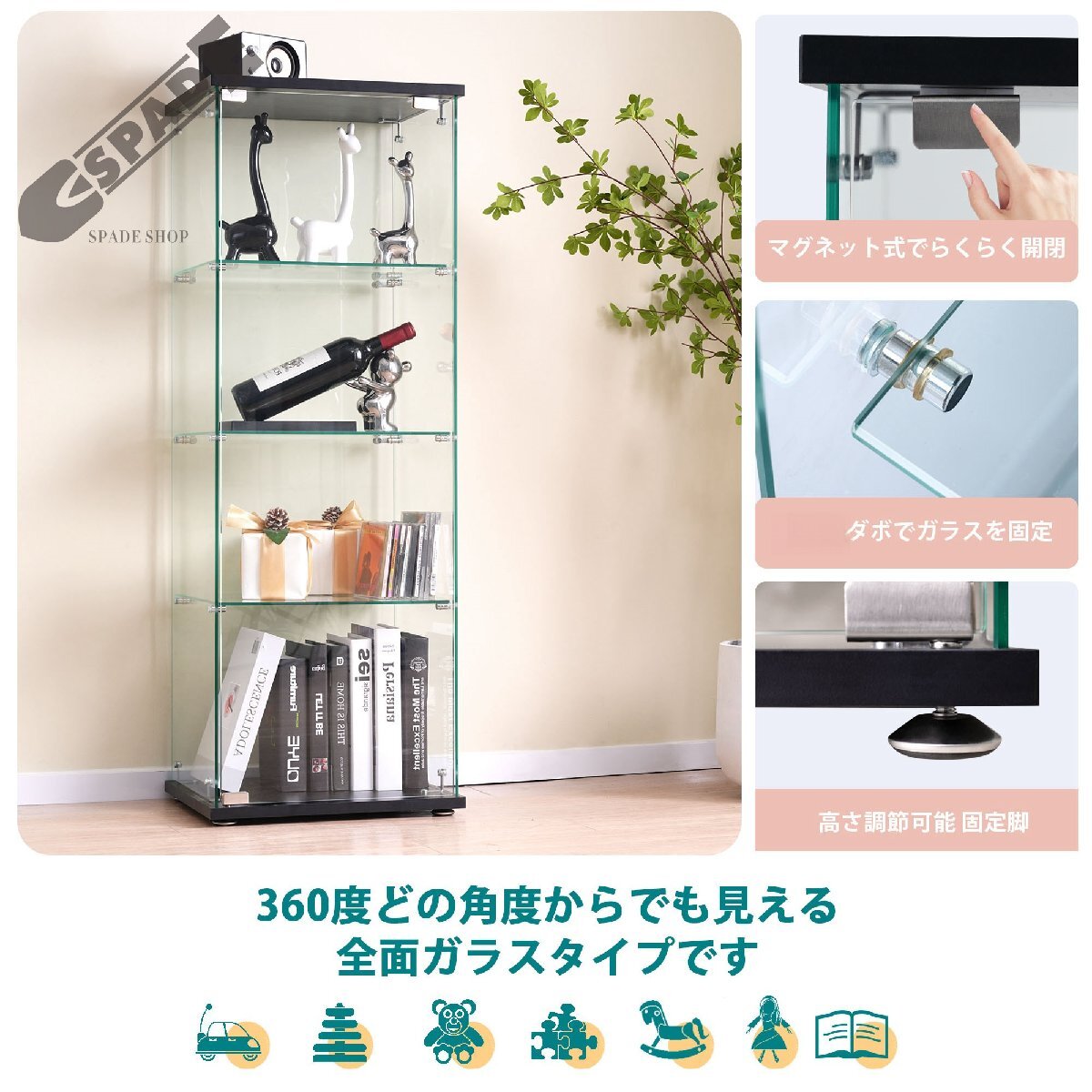 • 4面ガラスなので、開放感のある空間を演出。また、部屋の奥行を広く見せる効果があります。大切なコレクションにほこりが付きにくくします